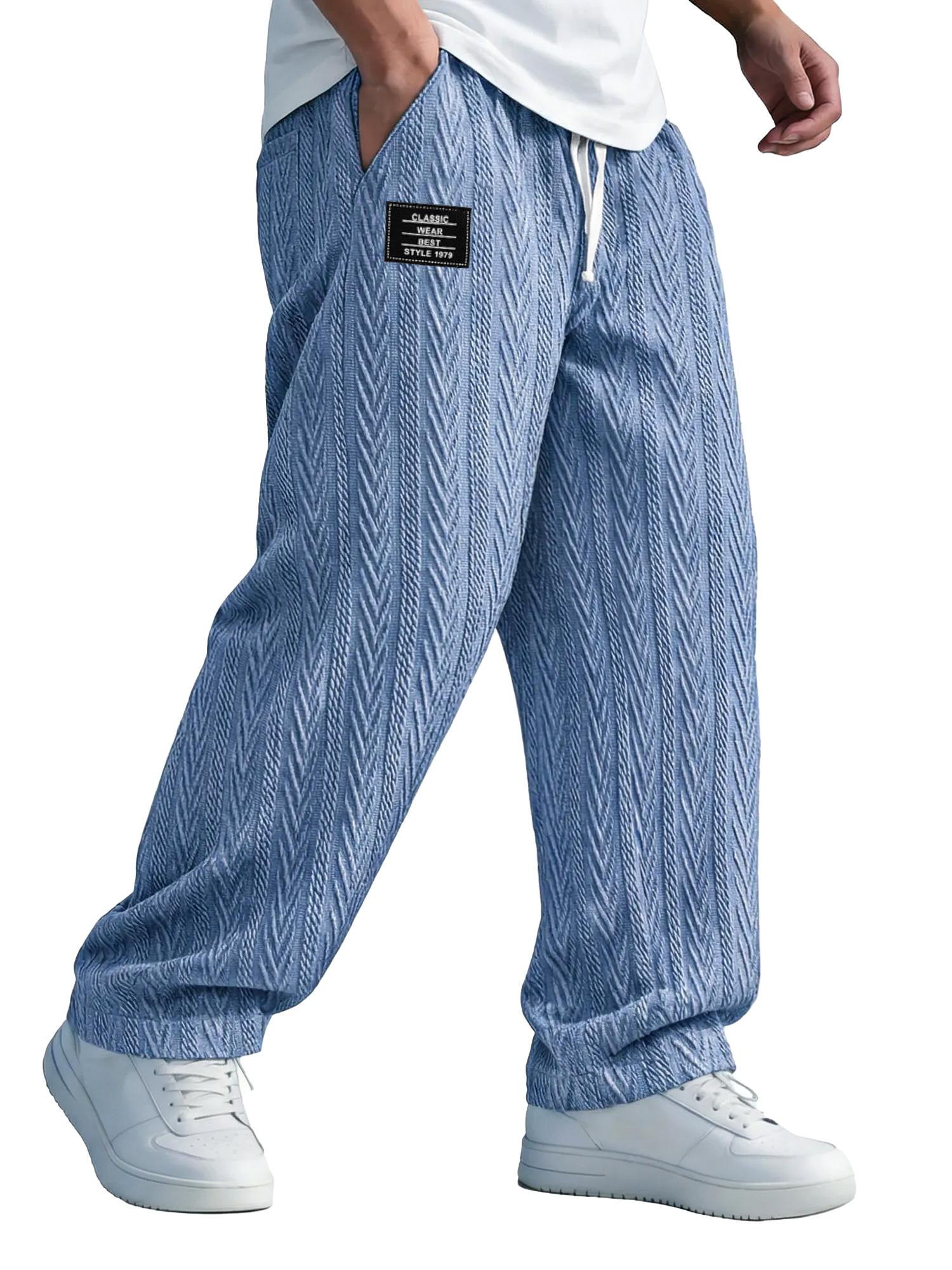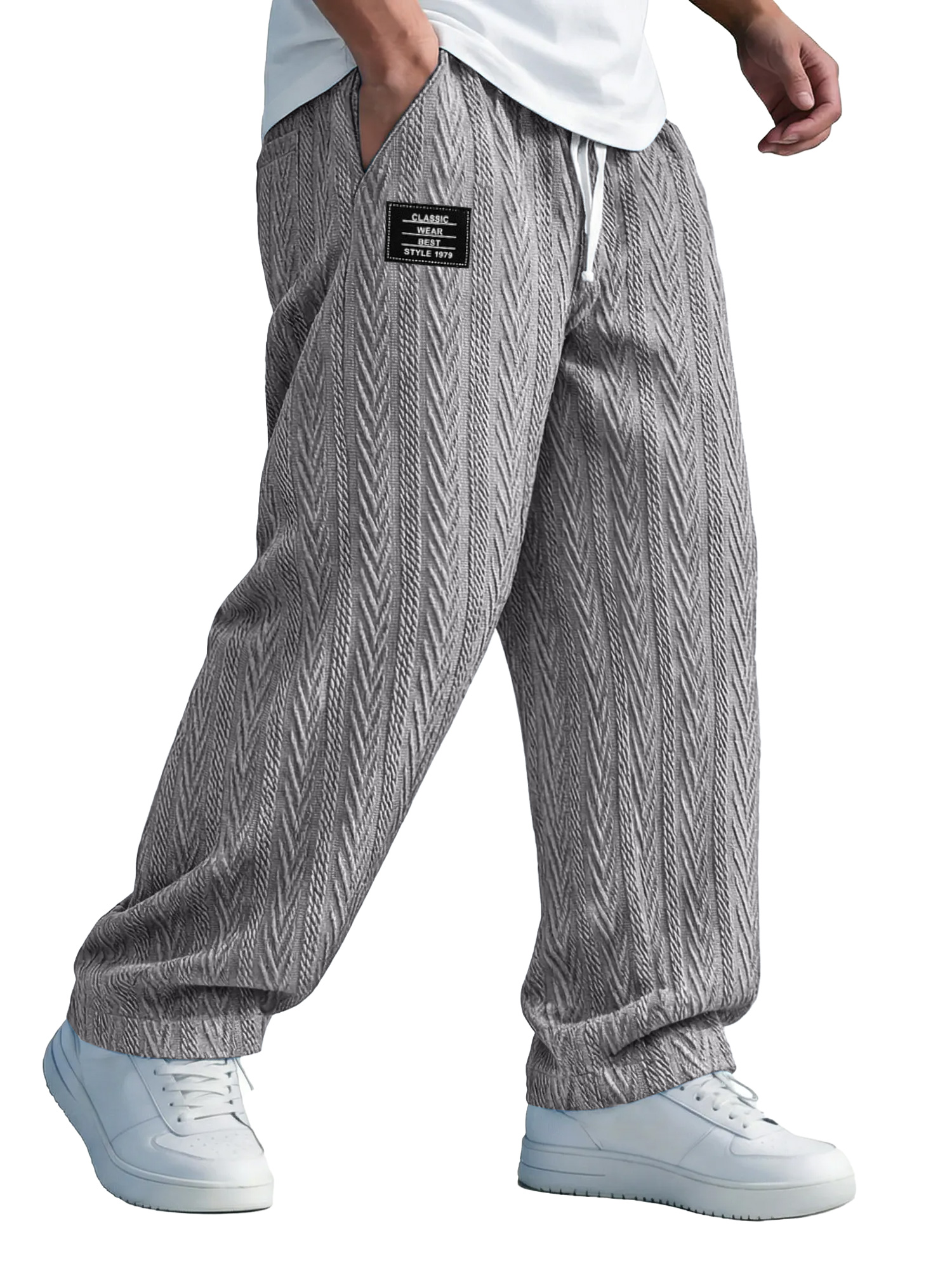 Men's Casual Jacquard Textured Embroidered Logo Elastic Waist Loose Trousers
