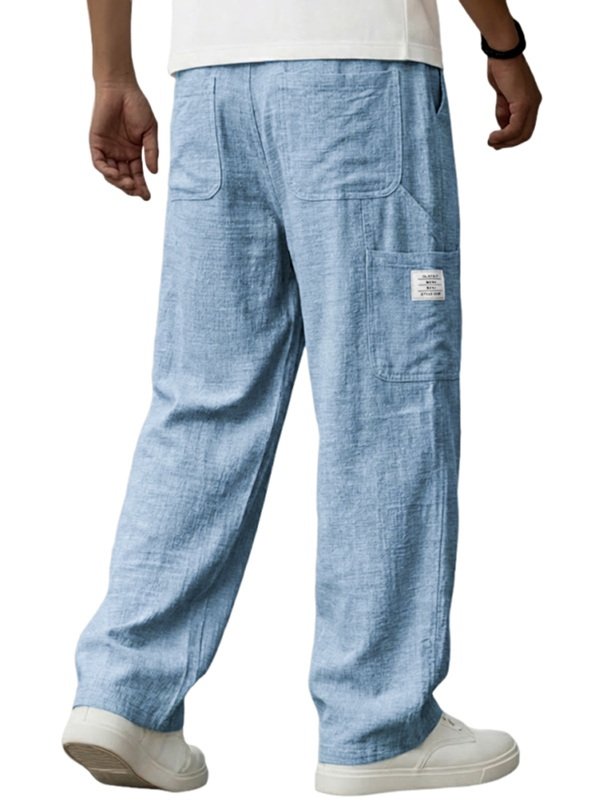 Men's Vintage Breathable Linen Multi-pocket Casual Embroidered Label Trousers