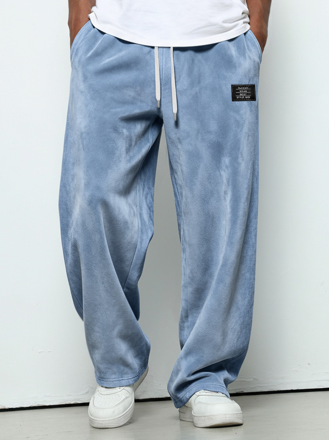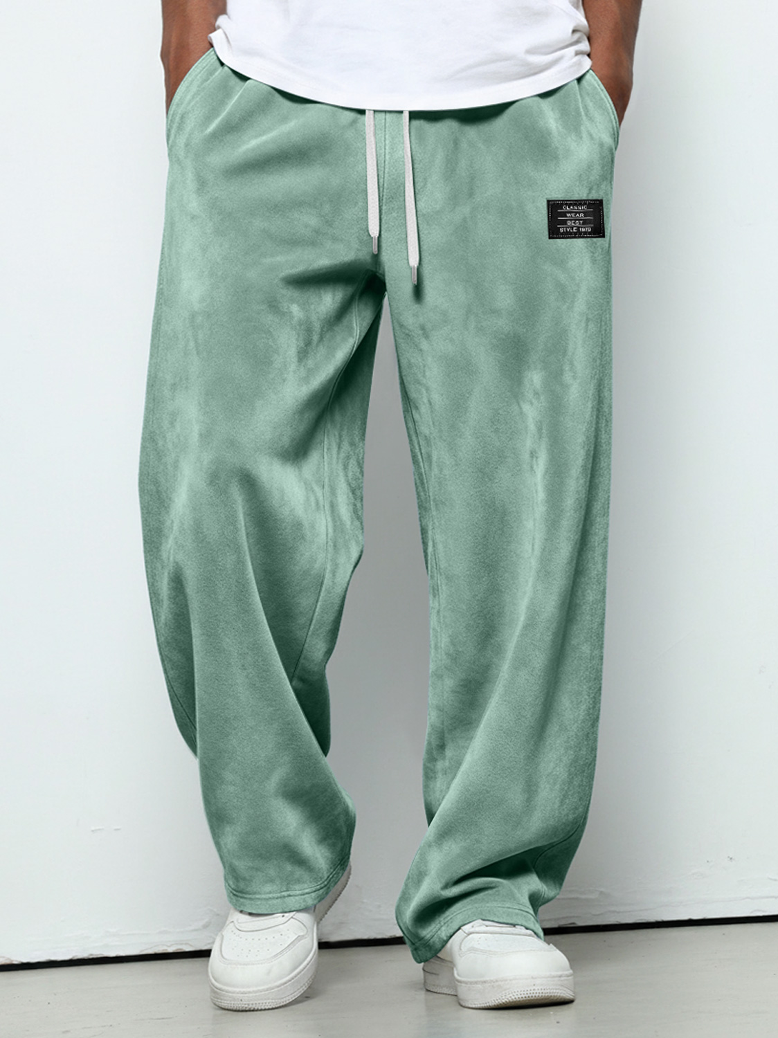 Men's Simple Suede Embroidered Logo Loose Solid Color Trousers