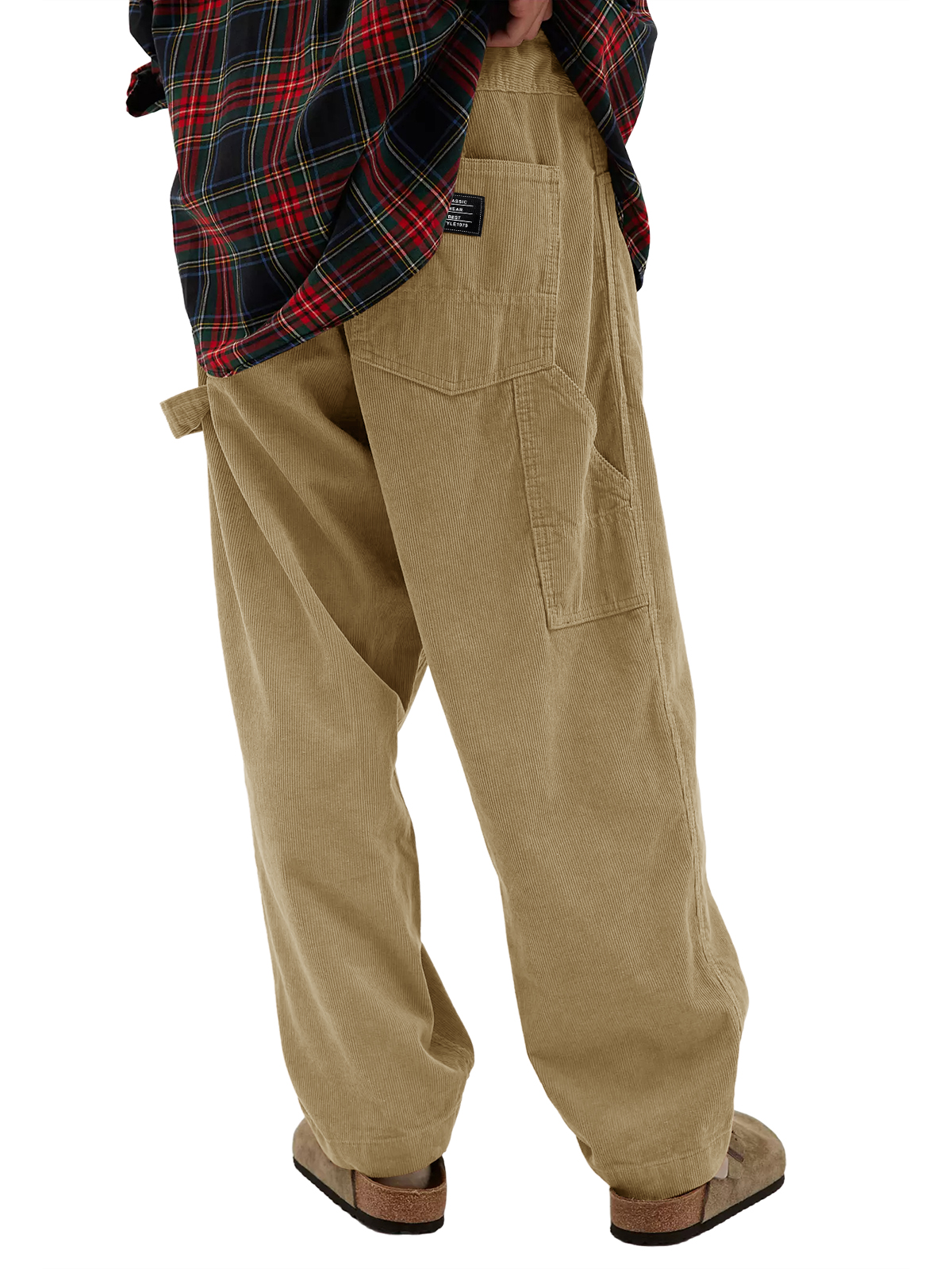 Men's Vintage Workwear Corduroy Multi-pocket Embroidered Logo Long Pants