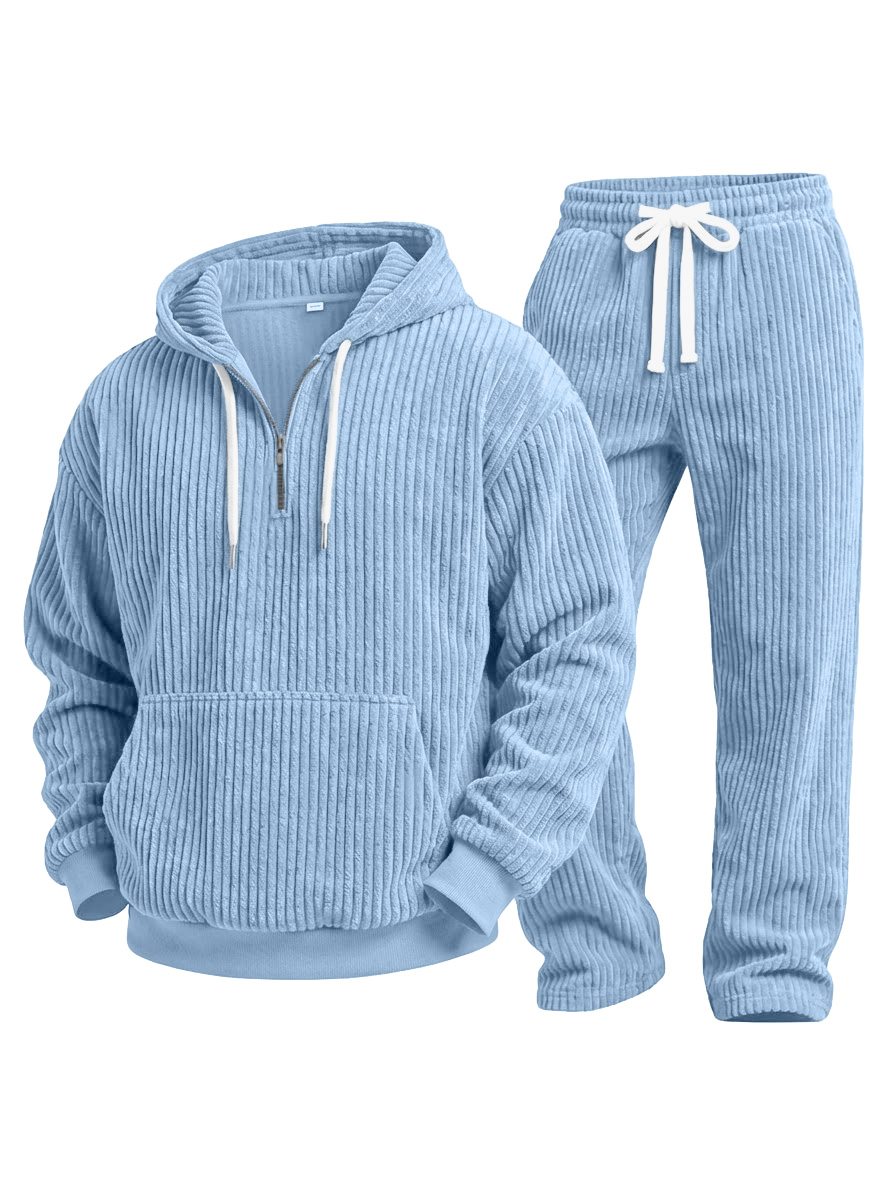 Men's Double-Sided Fleece Hooded Sweatshirt and Pants Two-Piece Set