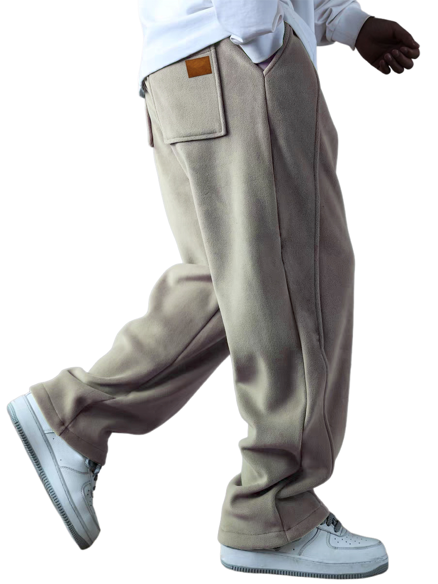 Men's Simple And Versatile Fleece Comfortable Loose Straight-leg Trousers