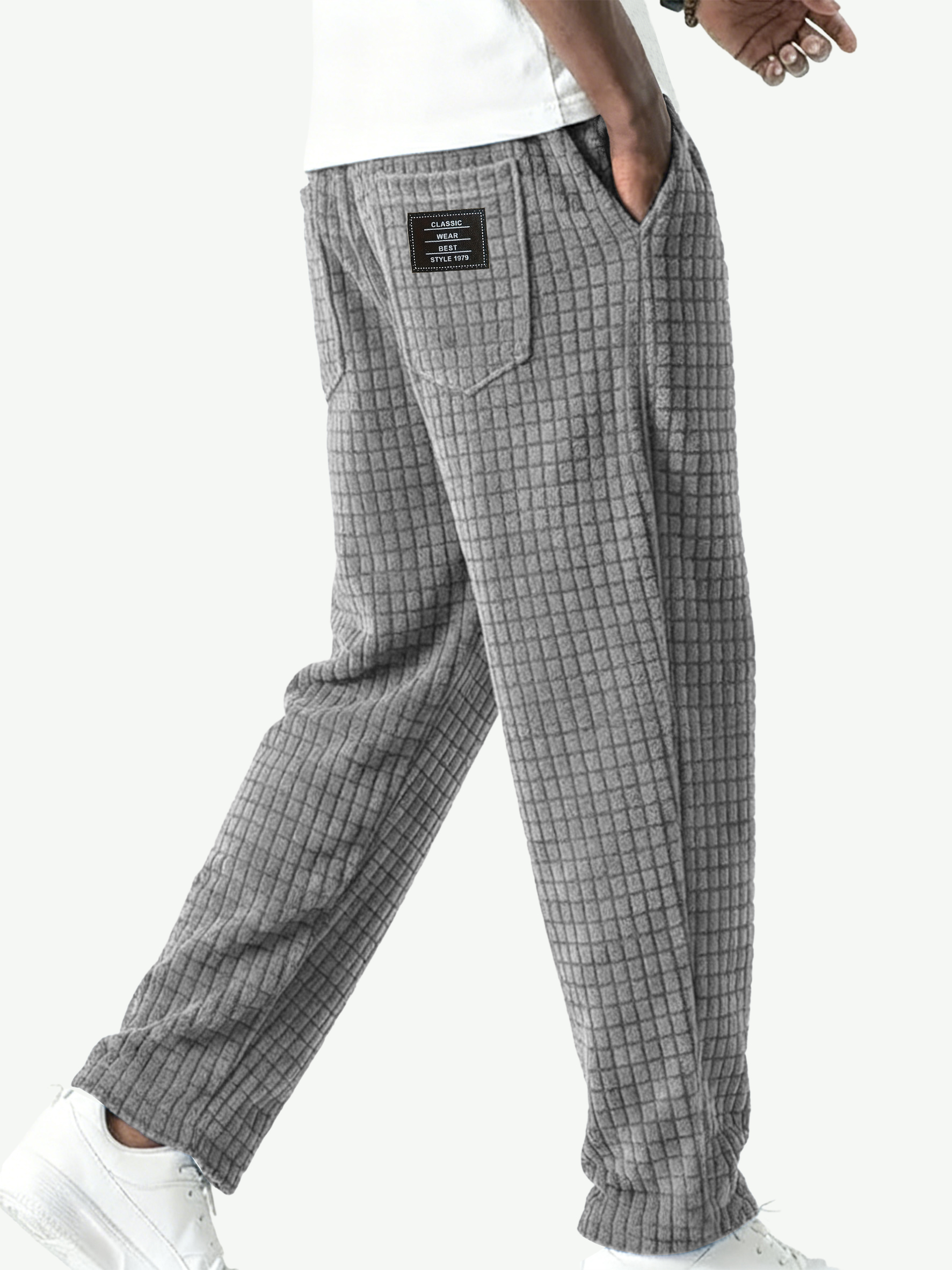 Men's Vintage Corduroy Waffle Texture Loose Simple Embroidered Label Pants
