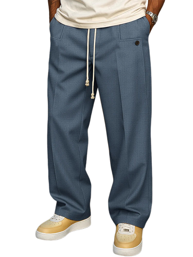Men's Fashion Casual Waffle Fabric Pocket Pocket Embroidery Drawstring Loose Trousers