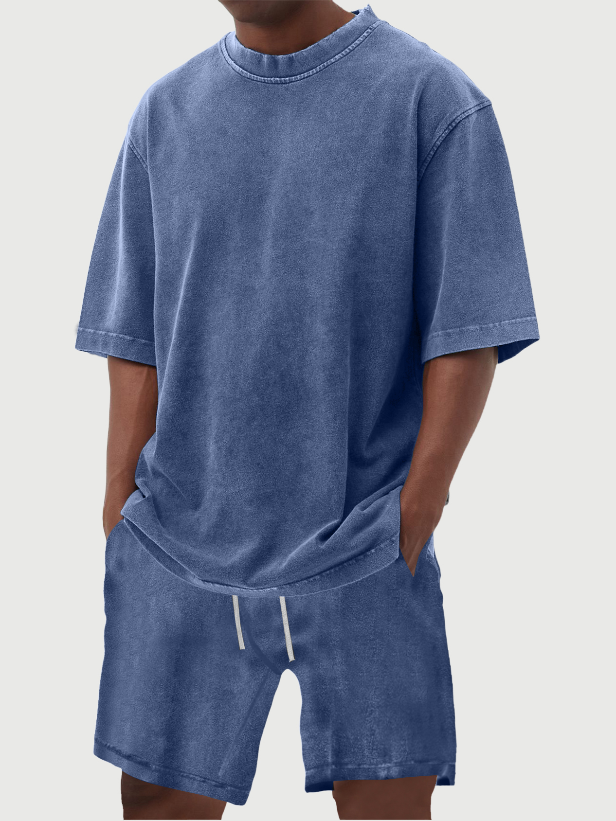 Men's 100% Cotton Vintage Distressed Washed Short Sleeved T-shirt Shorts Set