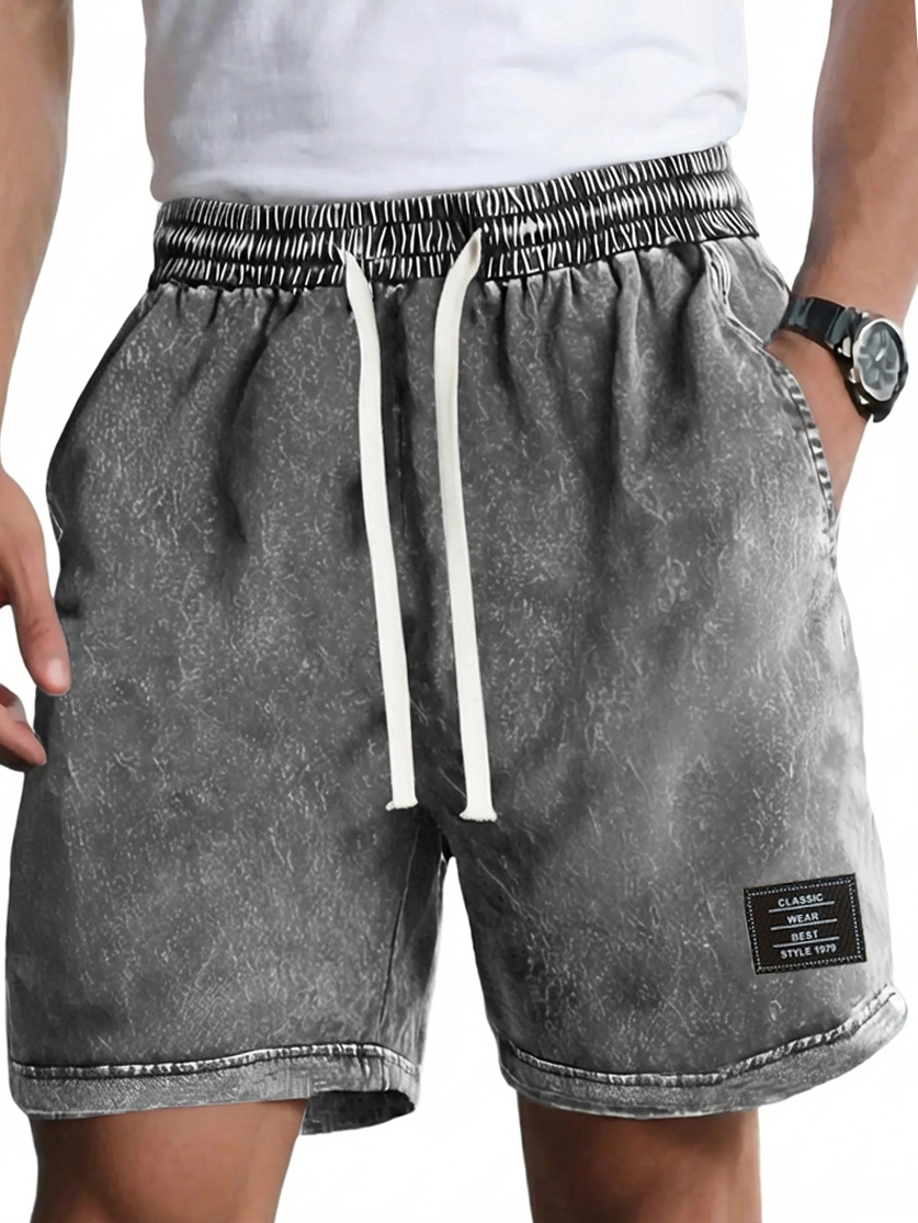 Men's Vintage Dyed Distressed Casual Beach Vacation Elastic Waist Shorts