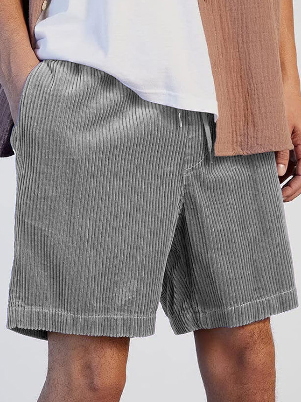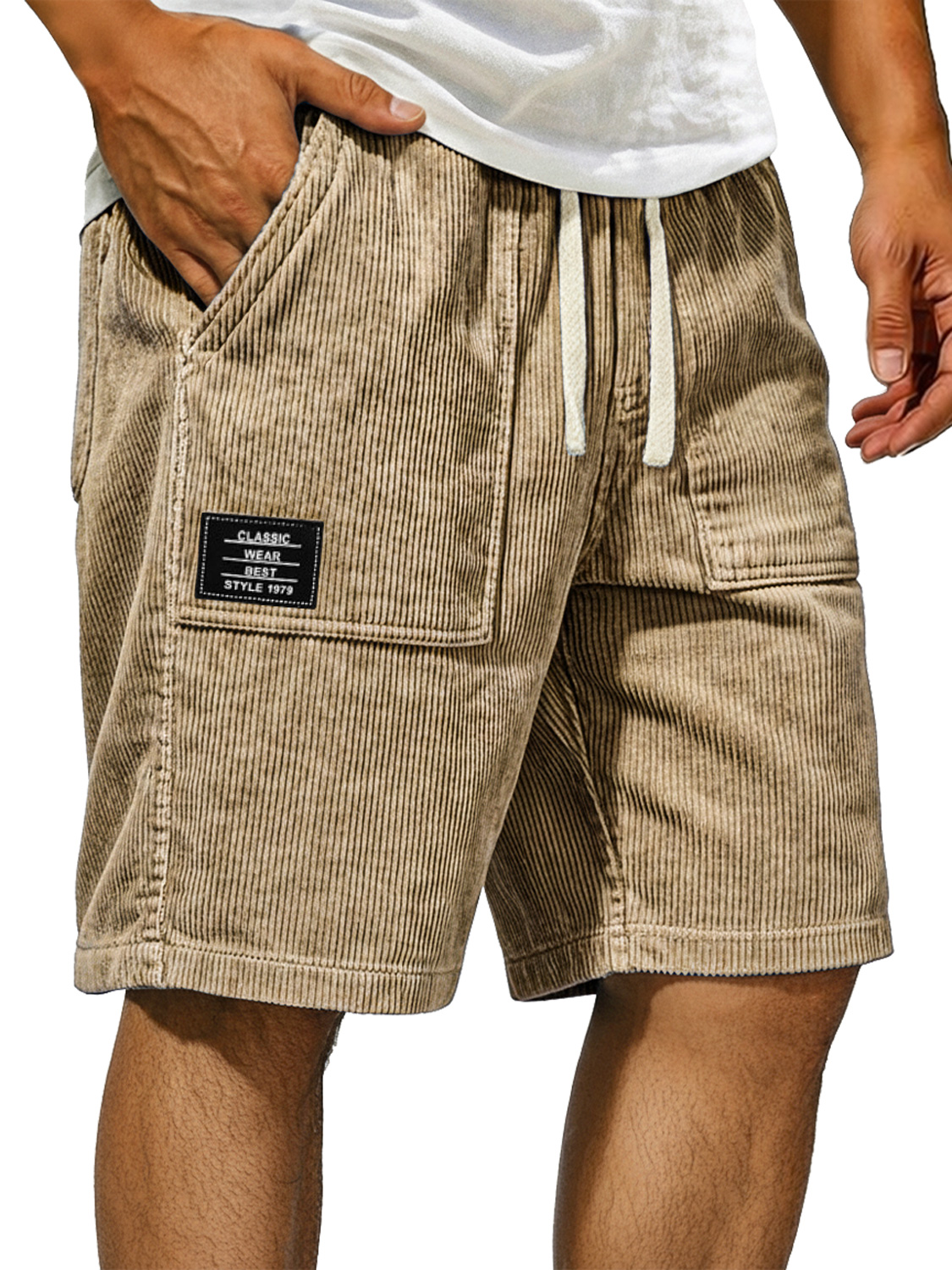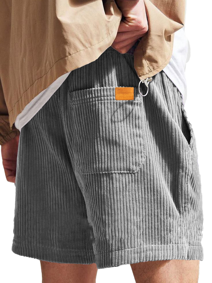 Men's Vintage Corduroy Shorts With Patch Pockets And Embroidered Logo