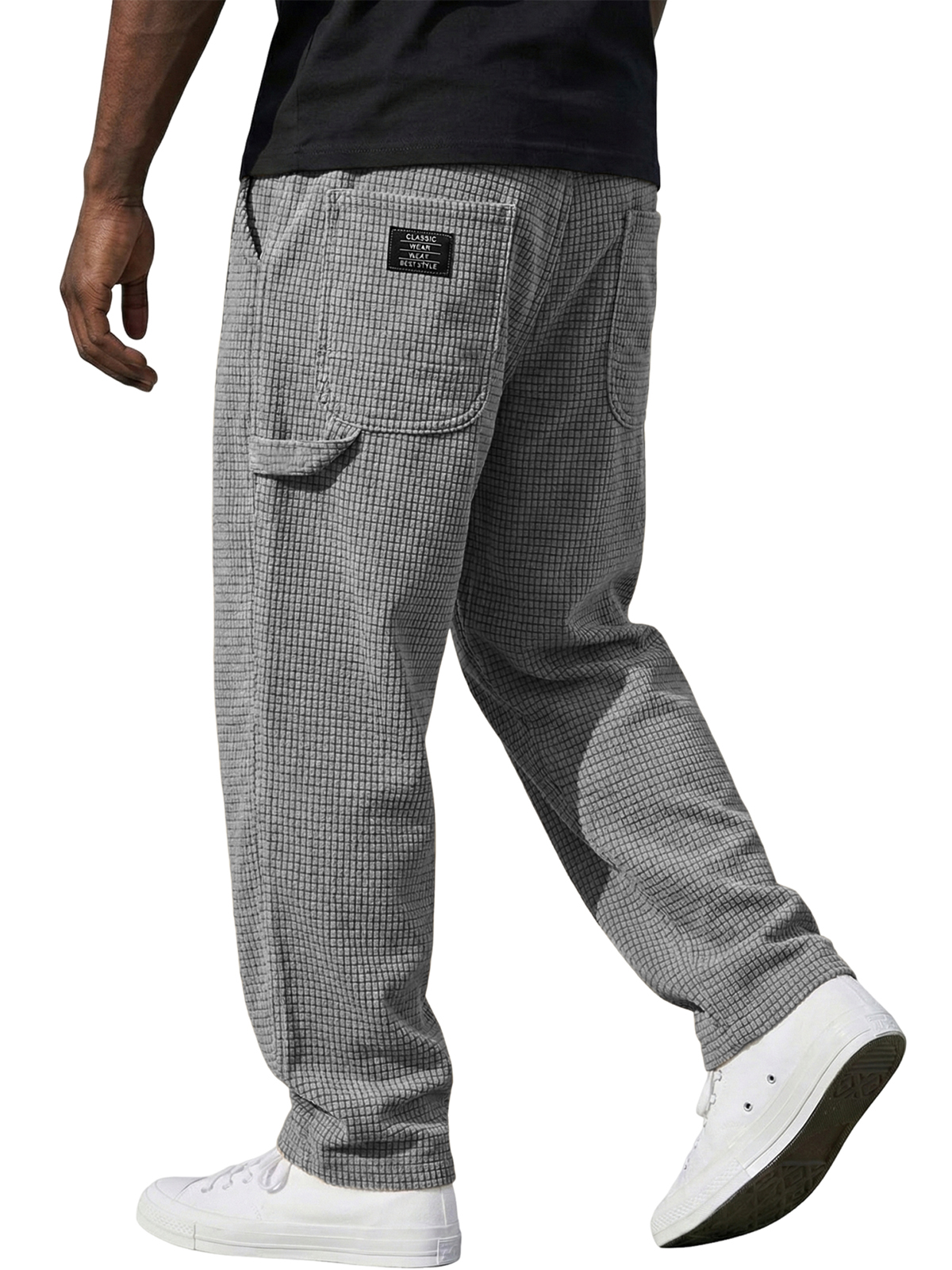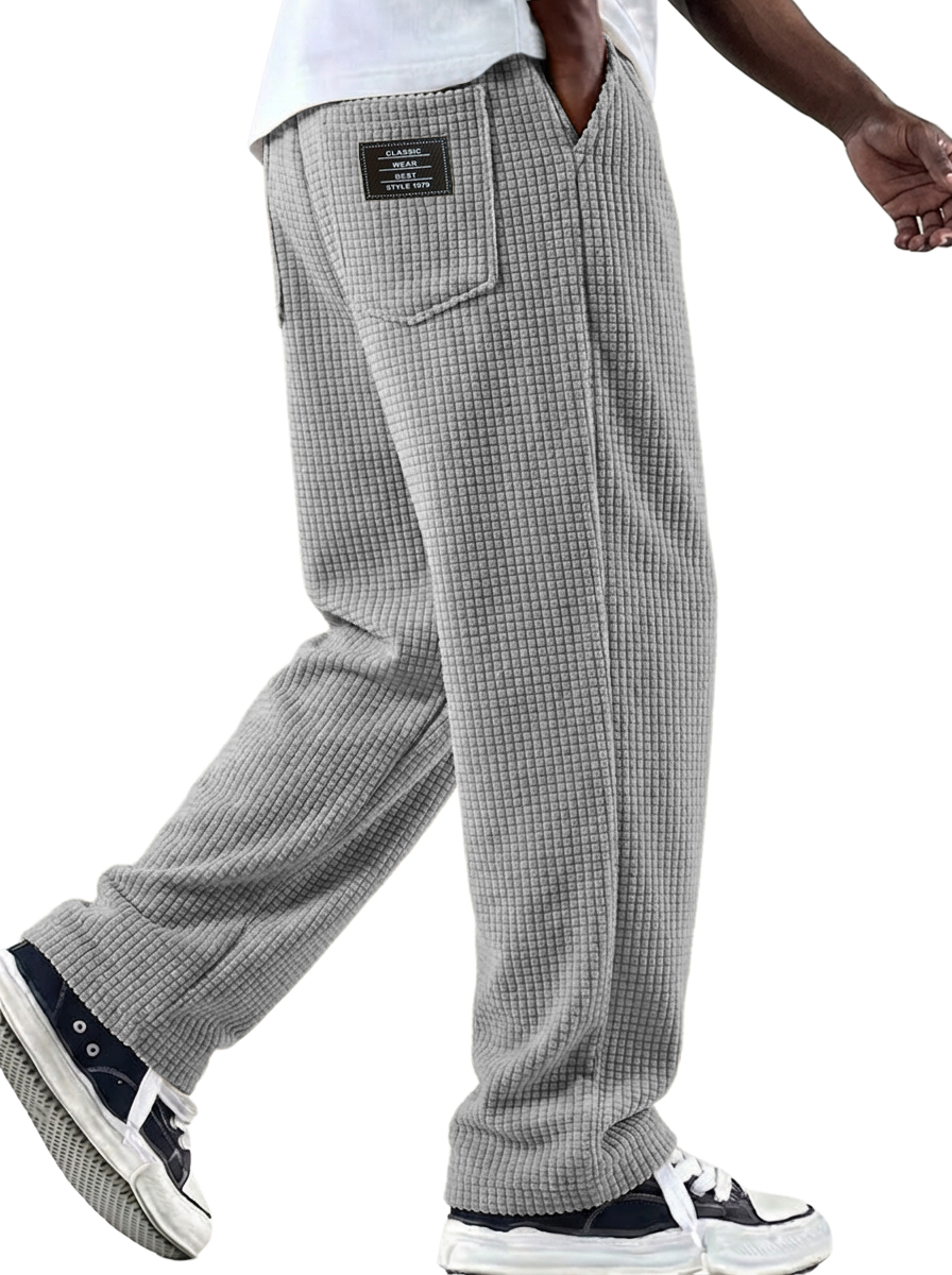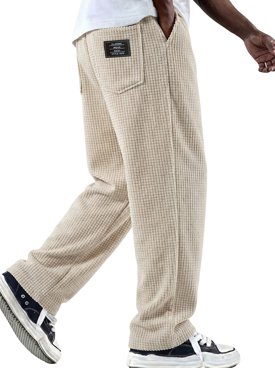 Men's Waffle Textured Pants with Decorative Stitching and Embroidered Label