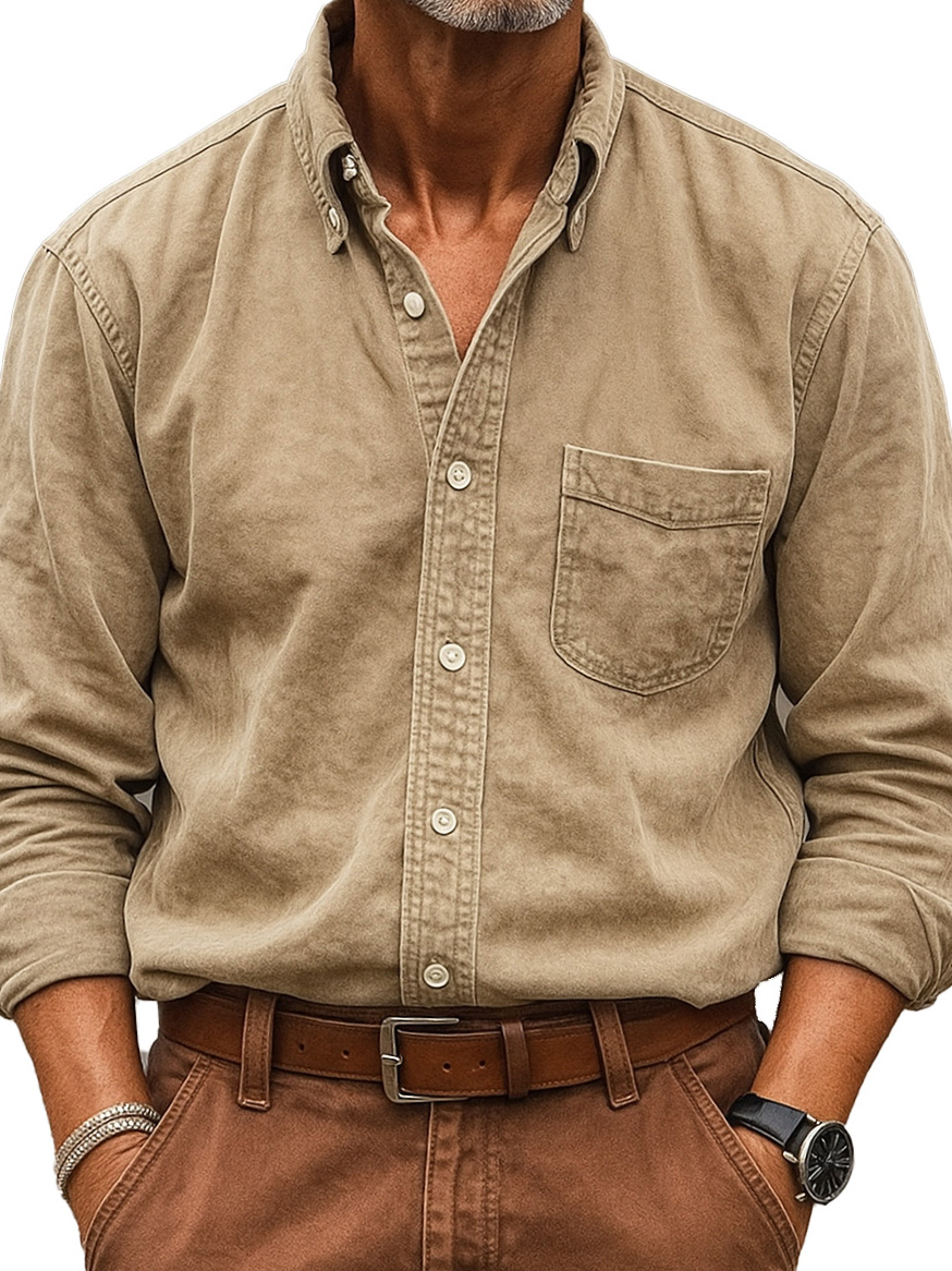 Men's Wear Fashionable Retro Vintage Vintage Pocket Lapel Loose Long-sleeved Shirt