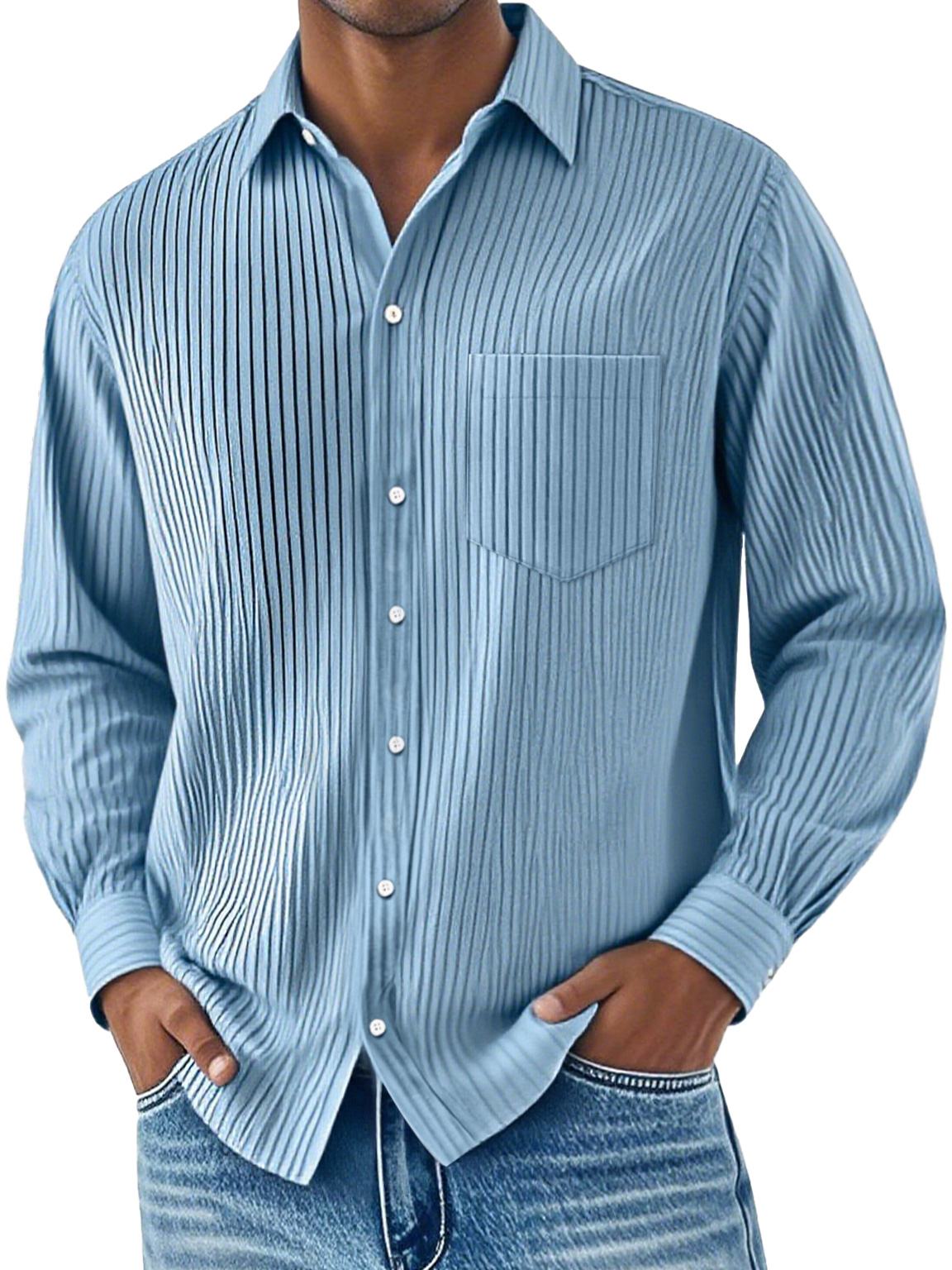 Men's Casual Solid Color Vertical Pit Strip Pocket Lapel Long-sleeved Shirt