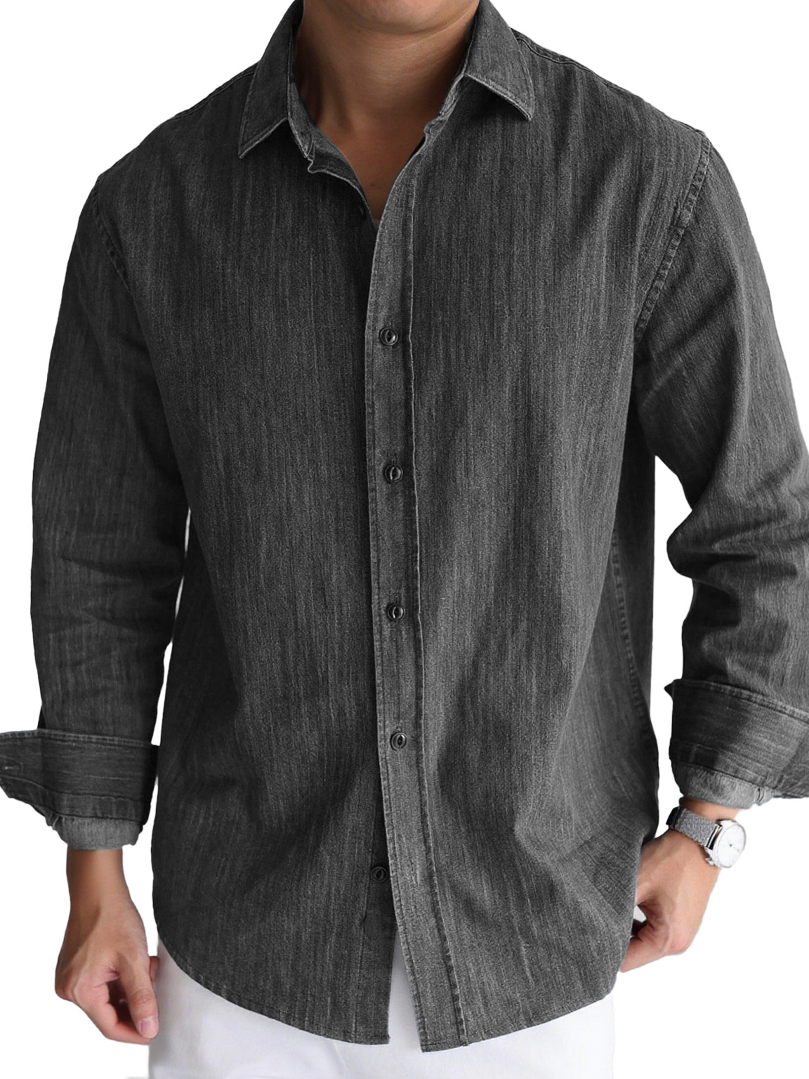 Men's Simple Daily Casual Solid Color Lapel Long-sleeved Shirt