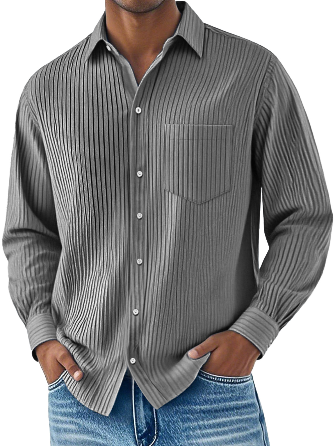 Men's Daily Ribbed Lapel Pocket Casual Long Sleeve Shirt