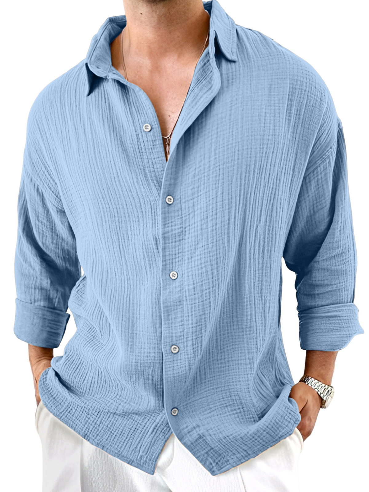 Men's Simple And Comfortable Solid Color Imitation Linen Lapel Long-sleeved Shirt