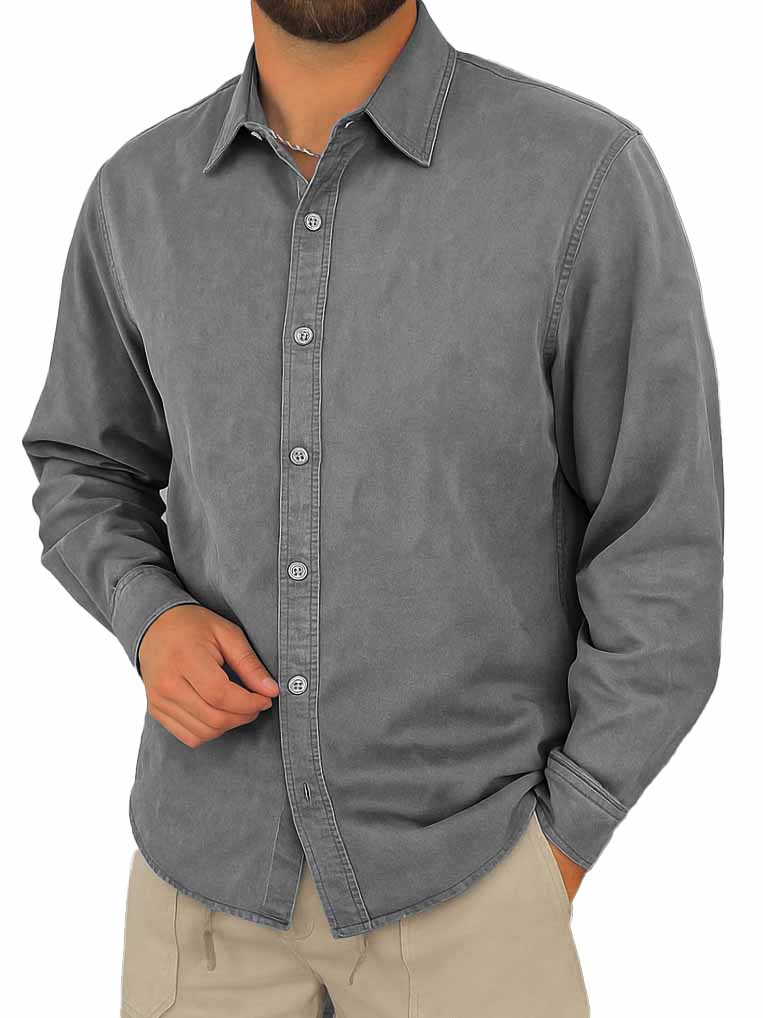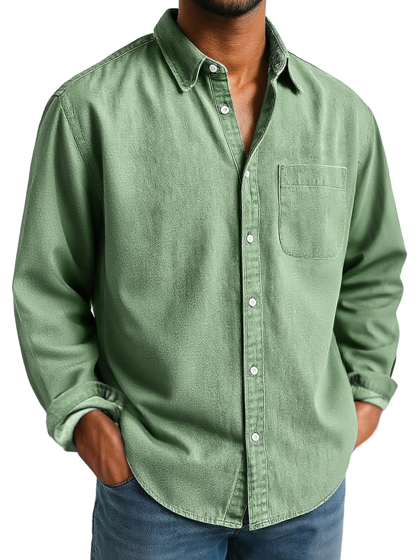 Men's Casual Simple Lapel Long Sleeve Shirt