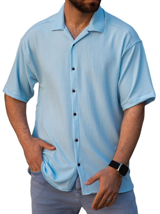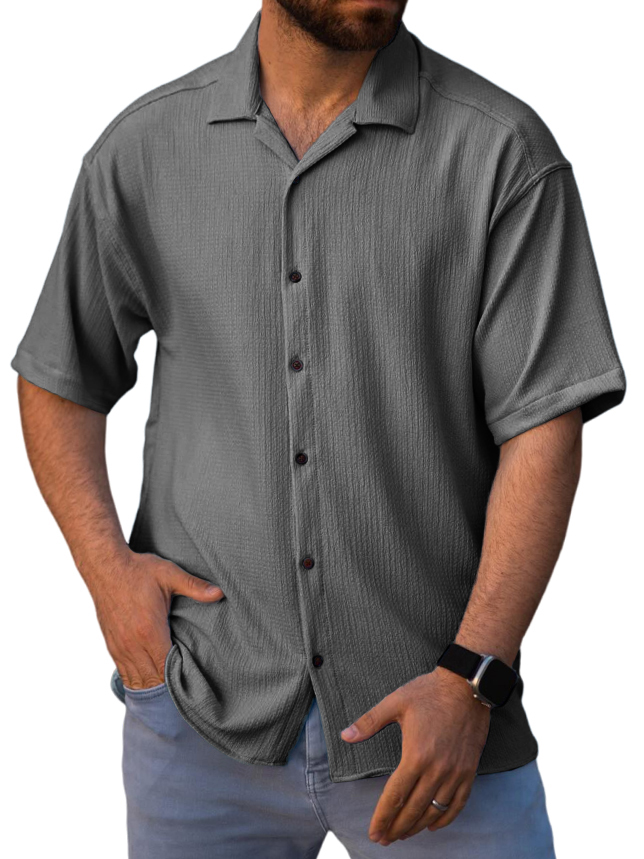 Men's Daily Loose Casual Breathable Solid Color Button Short-sleeved Shirt
