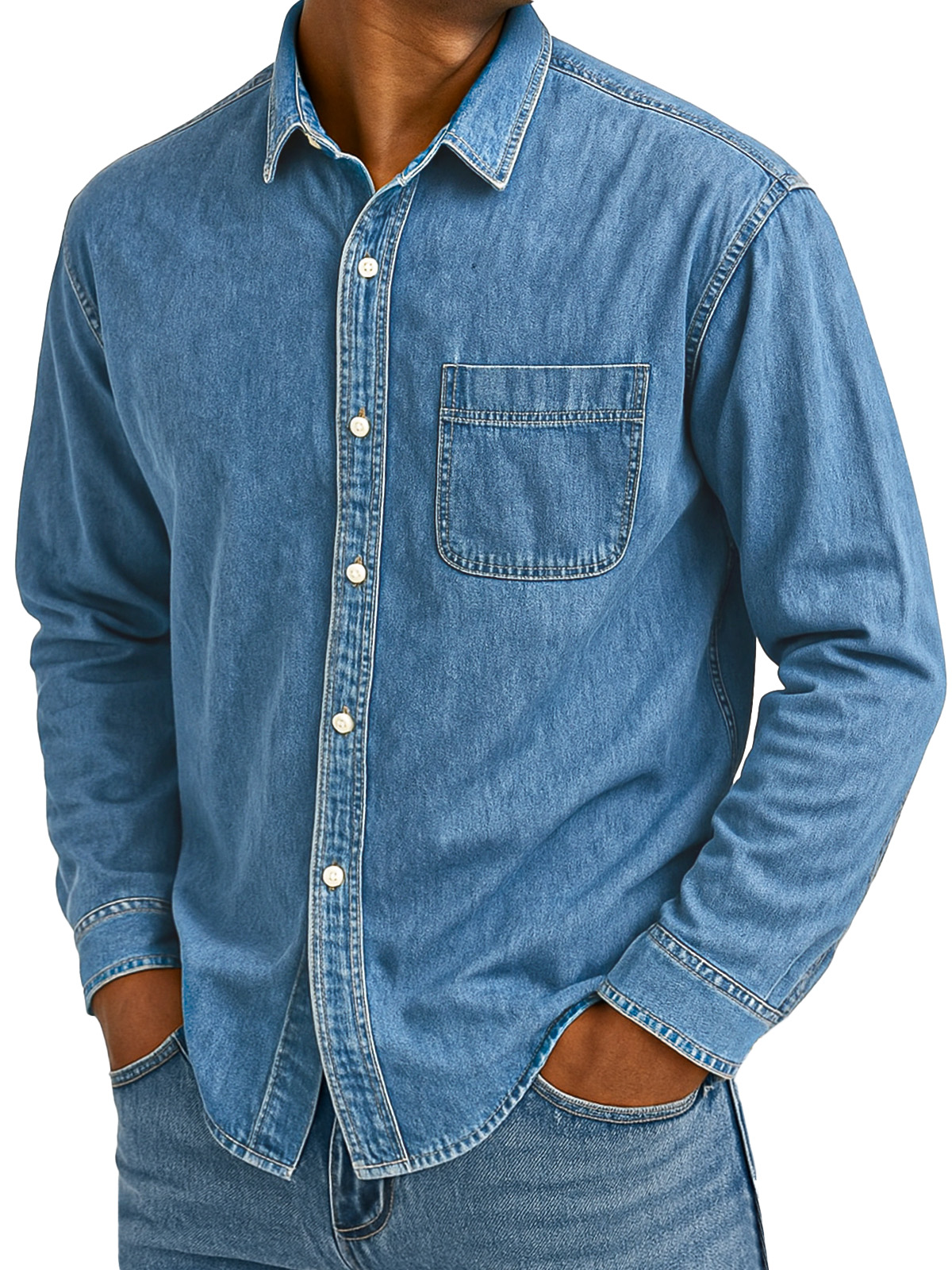Men's Everyday Lapel Pocket Casual Comfort Long Sleeve Shirt