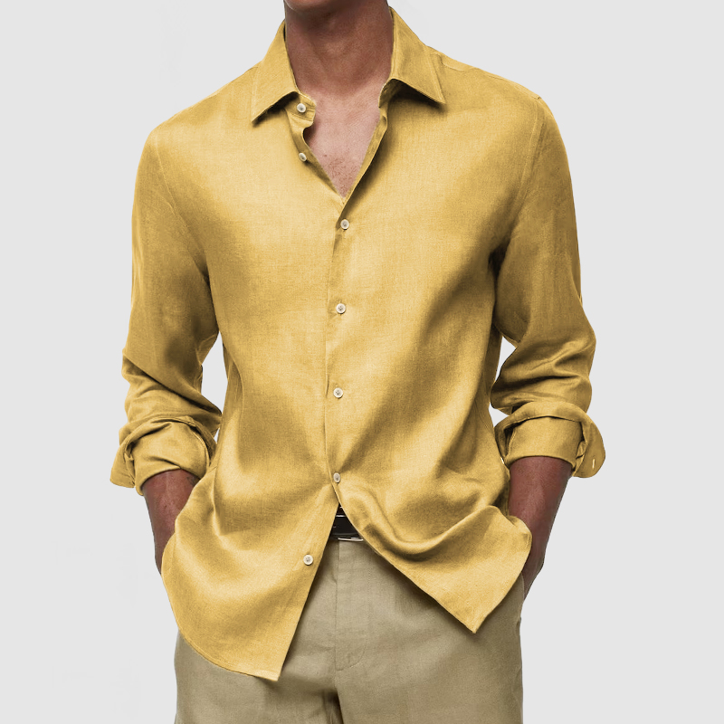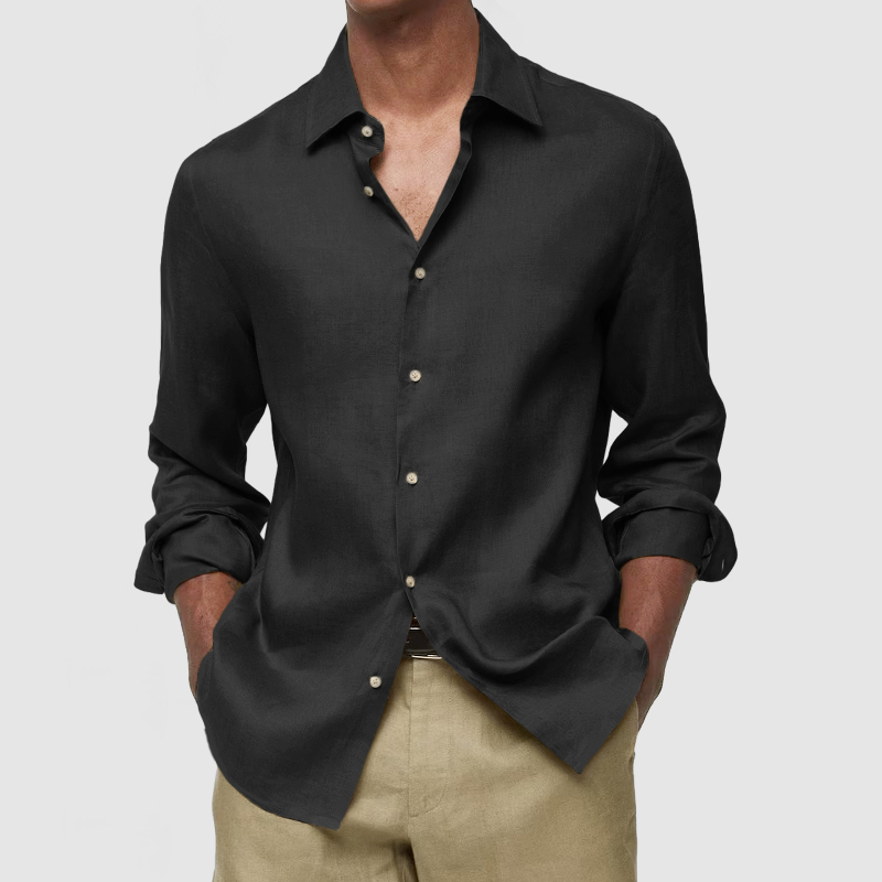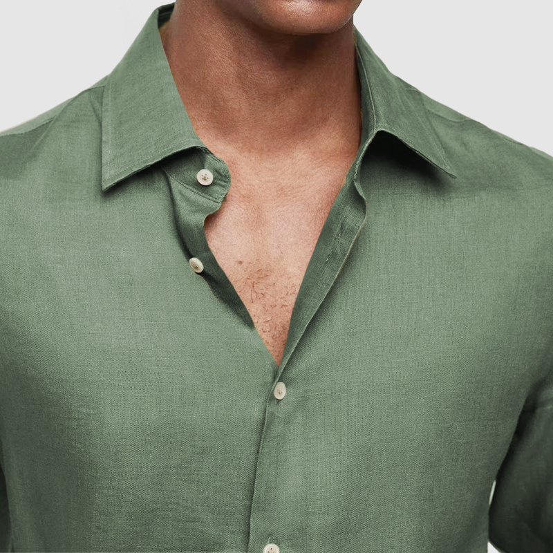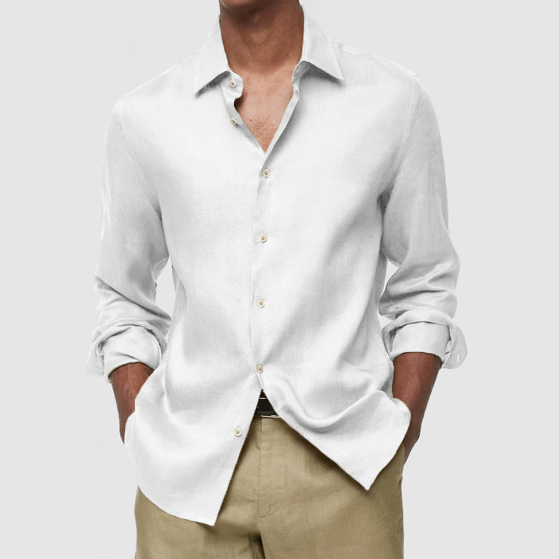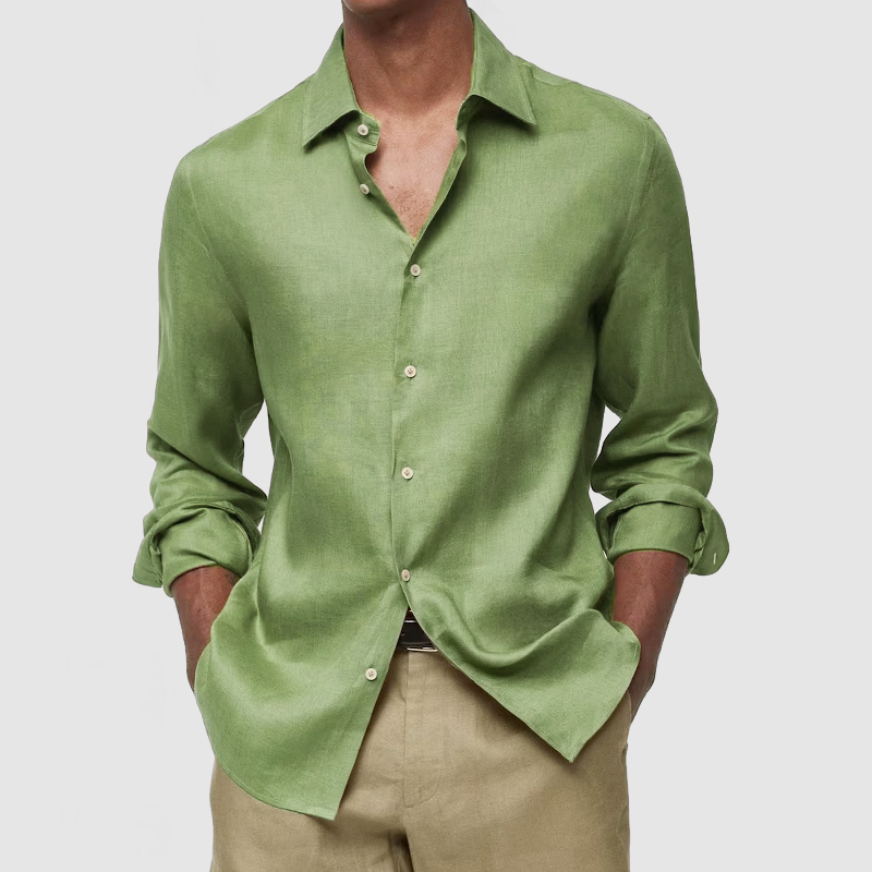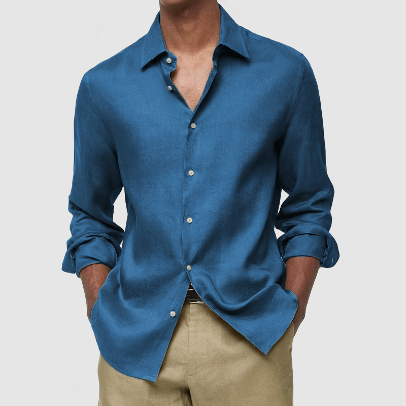This shirt has a business-casual style element and is made from Cotton And Linen, which is extremely breathable. The sharp, tailored design of the collar and sleeves with sleek white buttons makes this shirt simple and uncluttered! This shirt goes well with any outfit, which will all be the finishing touch! Whether for outdoor sports, leisure activities or social gatherings, this shirt will keep you elegant and gentlemanly for a long time.