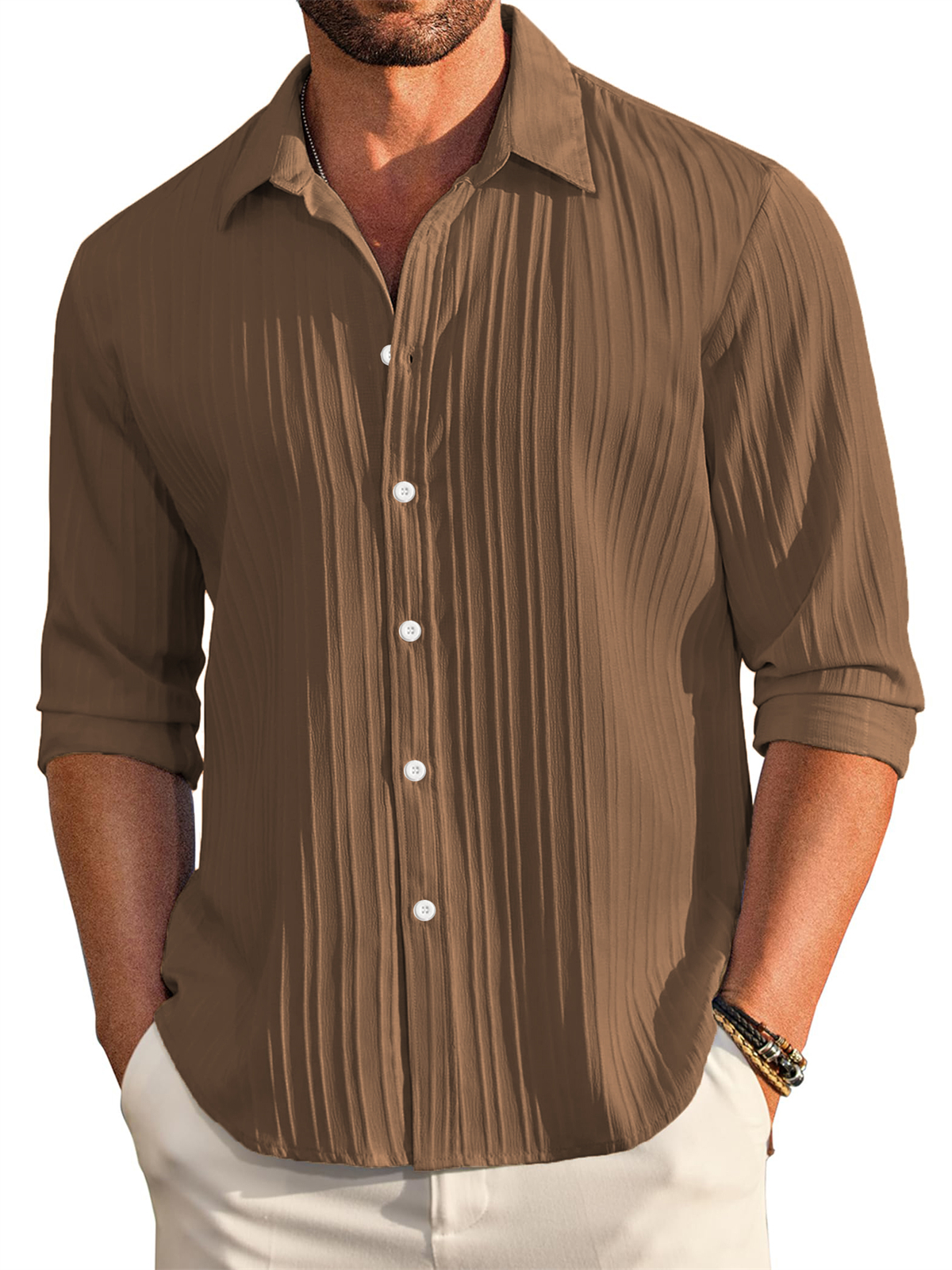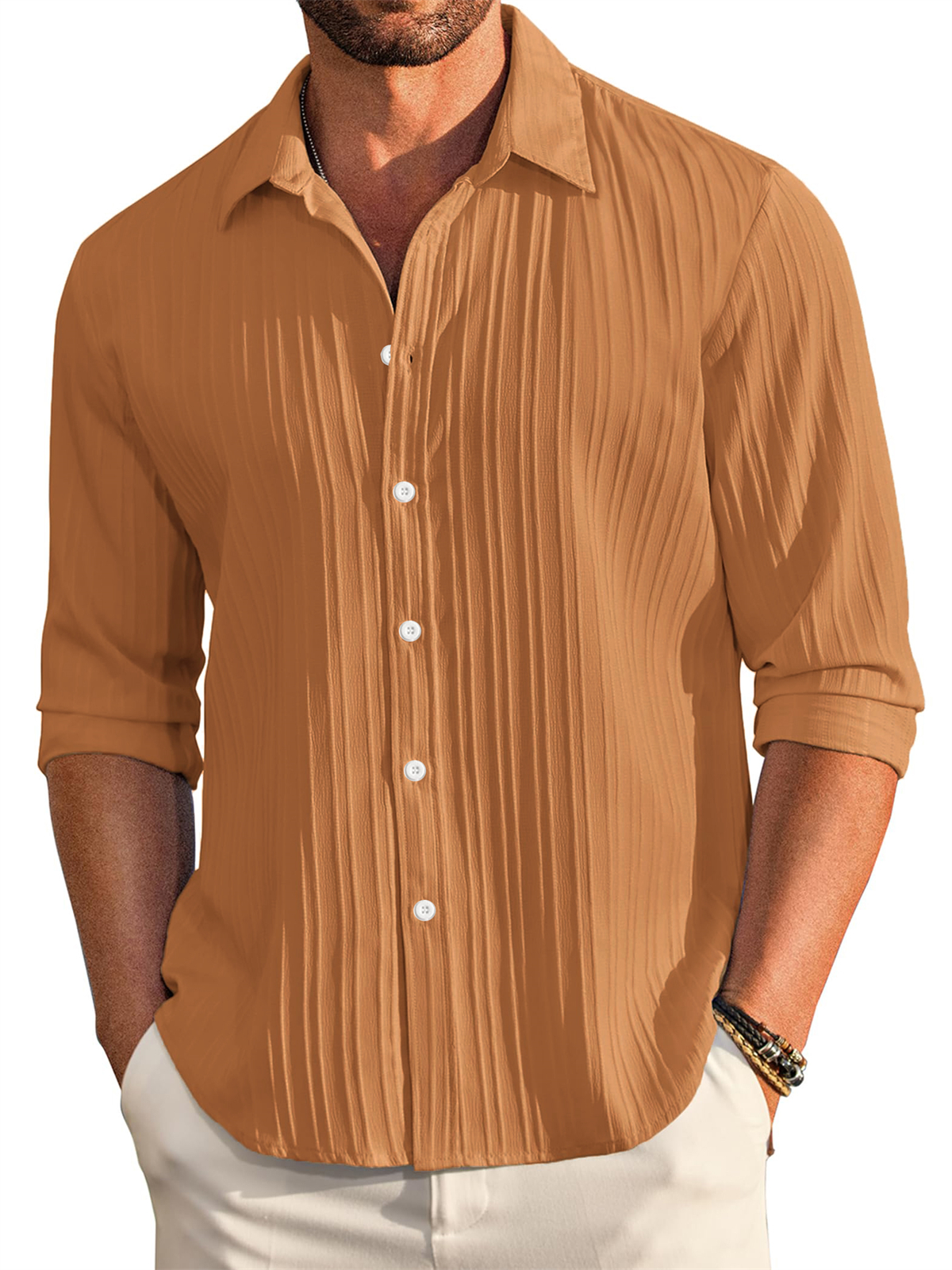 Men's Casual Comfortable Loose Textured Long Sleeve Shirt