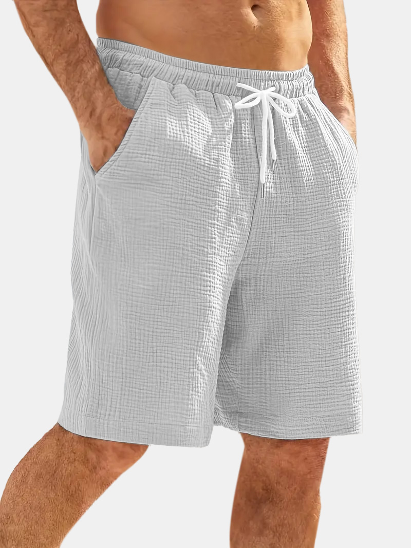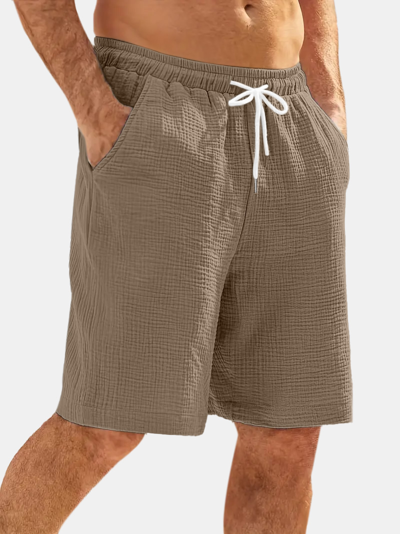 Men's Casual Hawaiian Bubble Wrinkle Comfortable Solid Color Beach Shorts