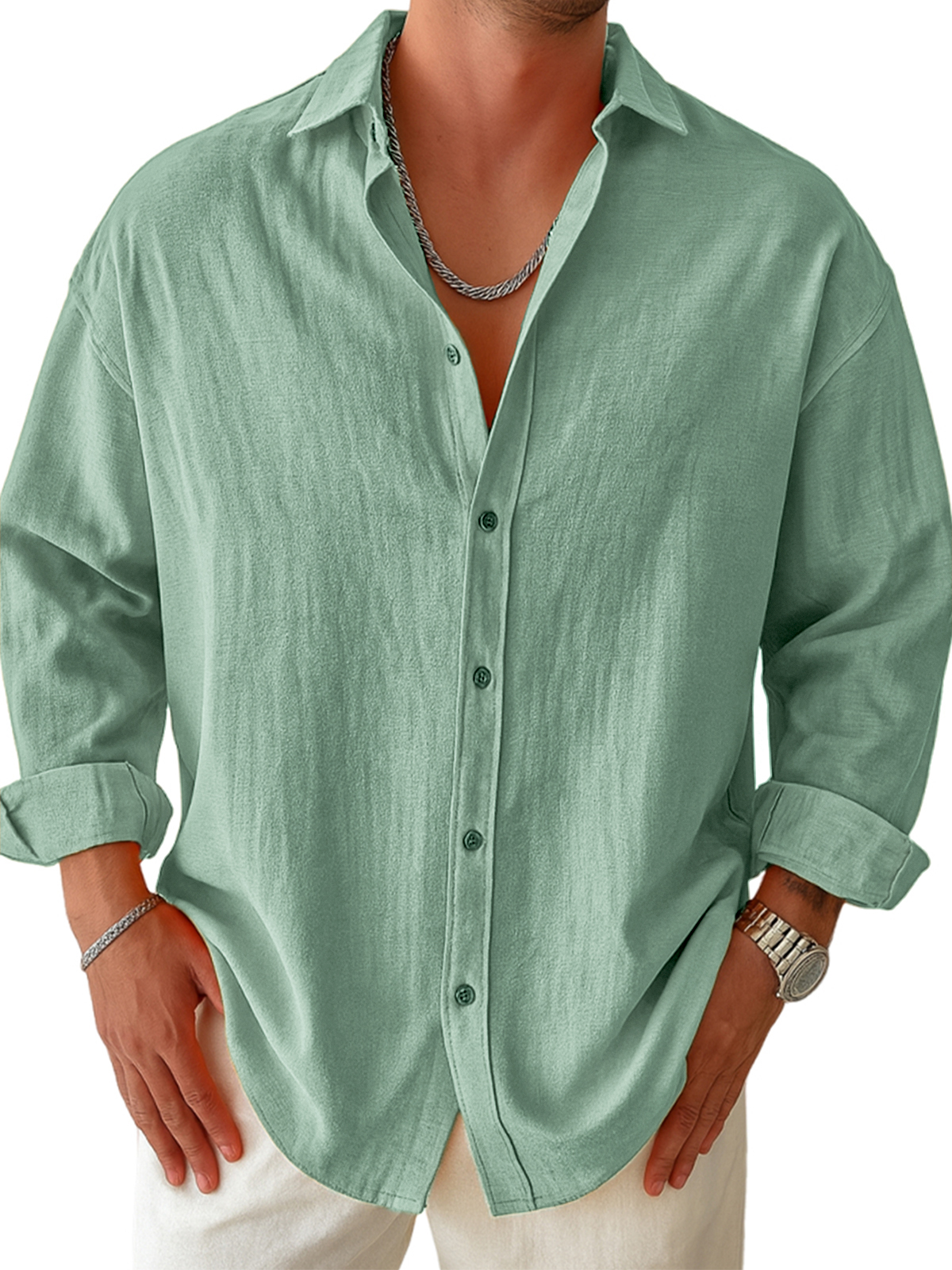 Men's Casual Pleated Long-sleeved Shirt