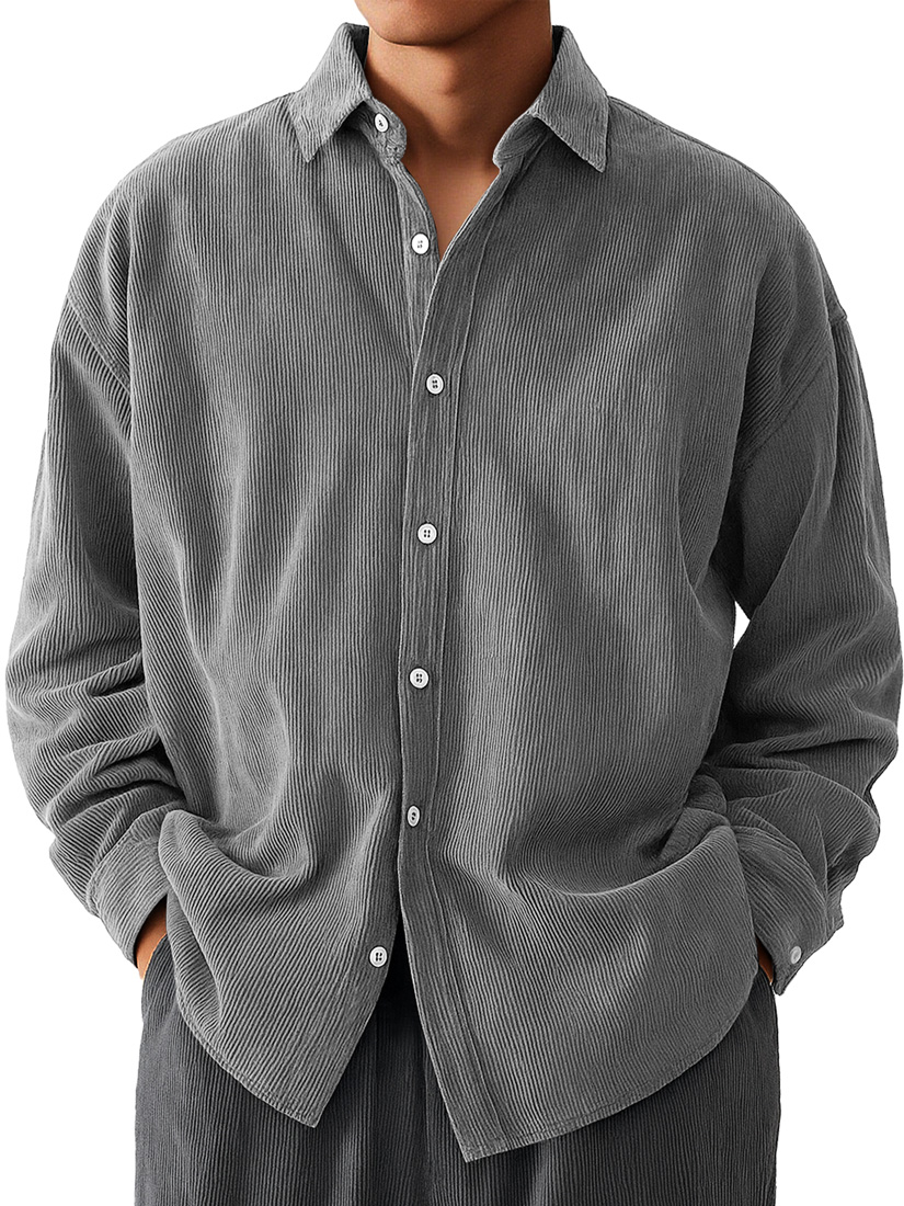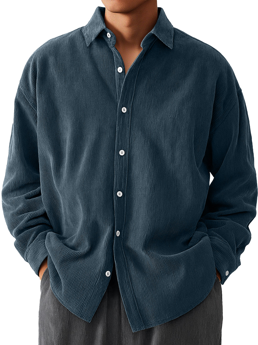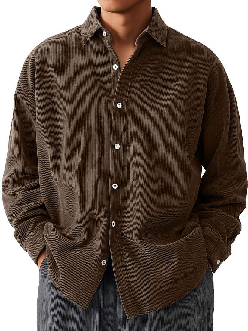 Men's Daily Corduroy Casual Solid Color Long-sleeved Shirt