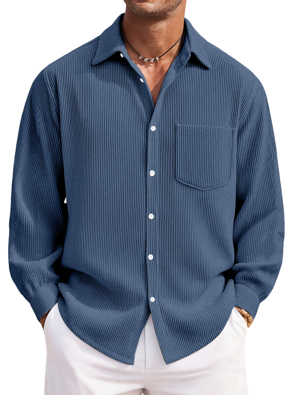Men's Everyday Casual Solid Color Corduroy Button Lapel Long Sleeve Shirt