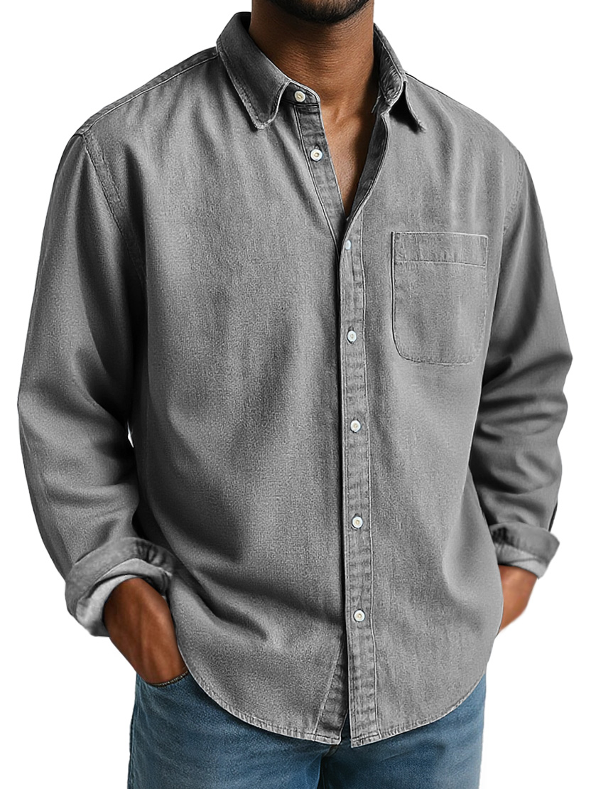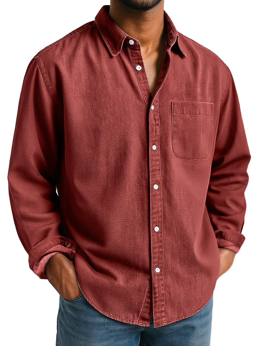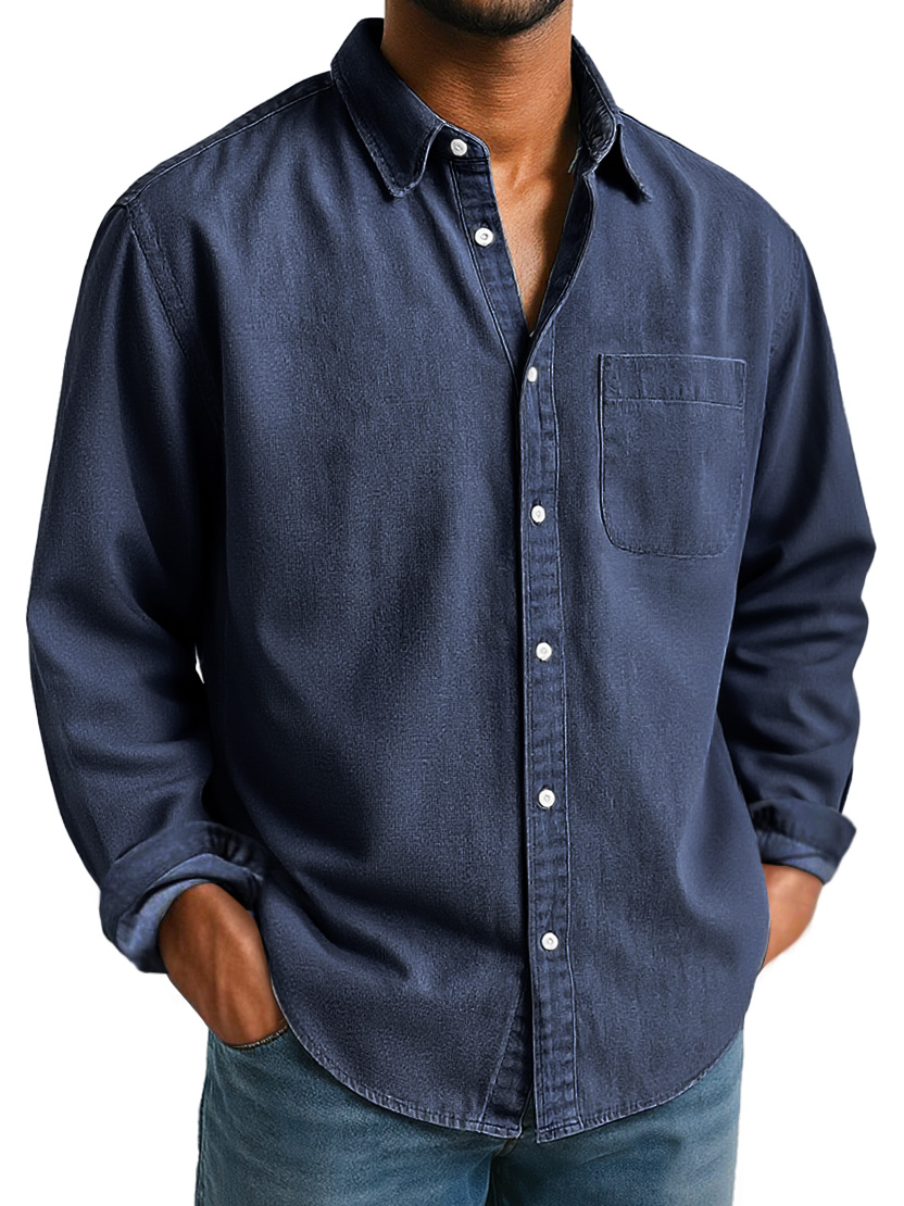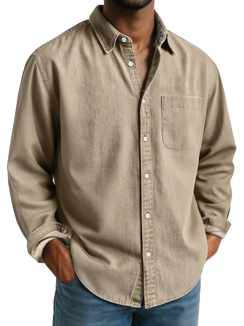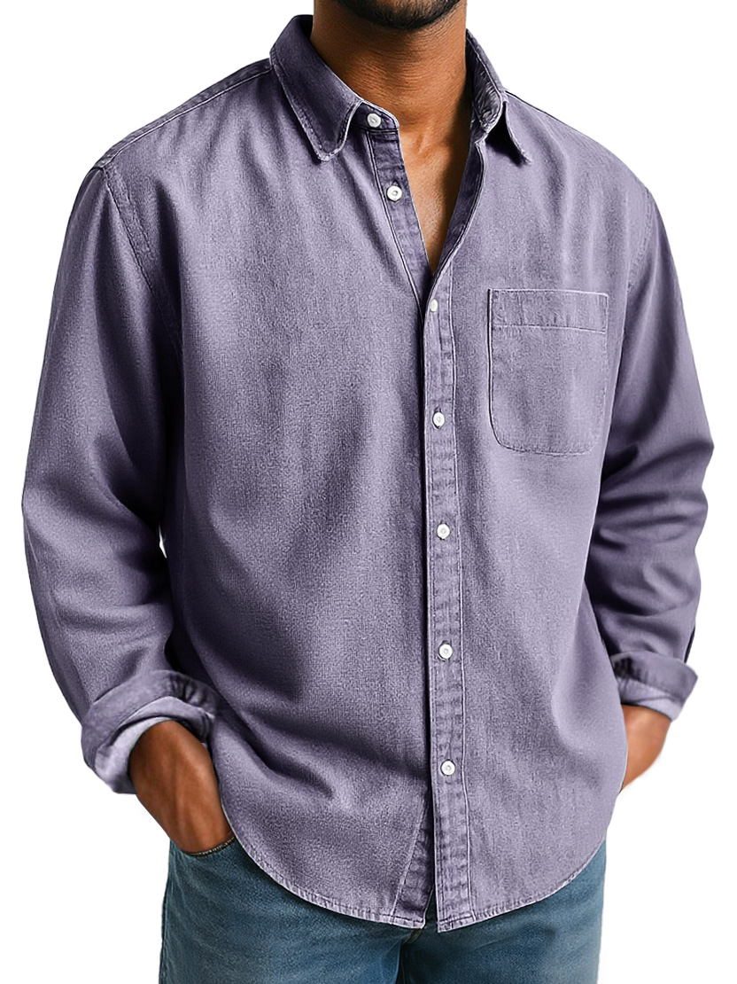 Men's Everyday Lapel Pocket Casual Comfort Long Sleeve Shirt