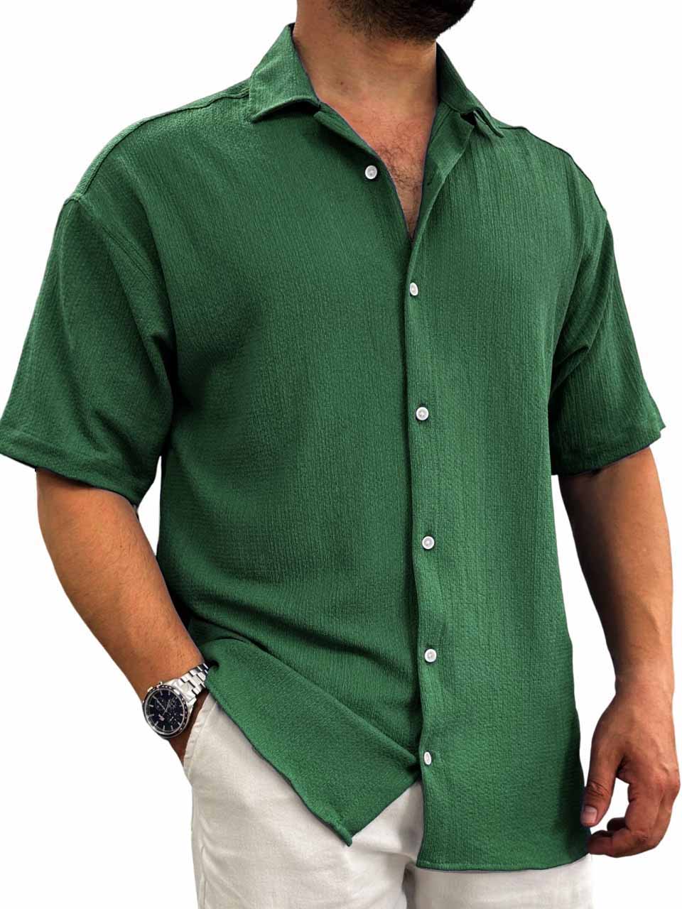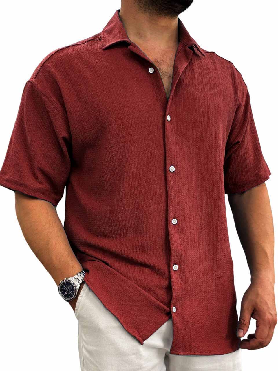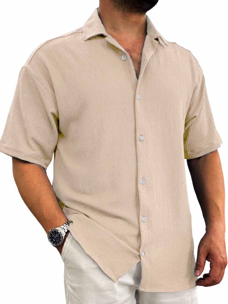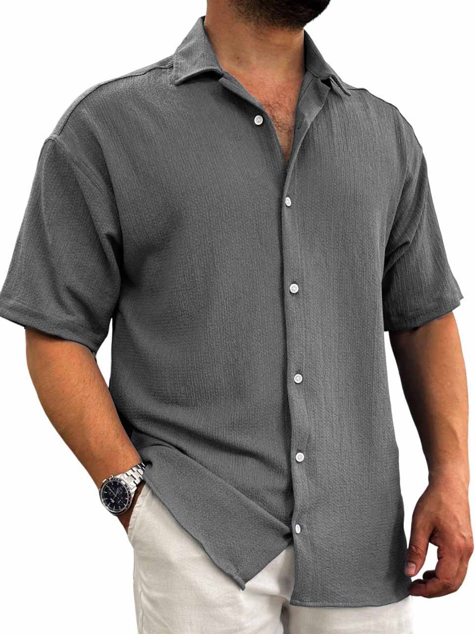 Men's Hawaiian casual pit fabric short-sleeved shirt