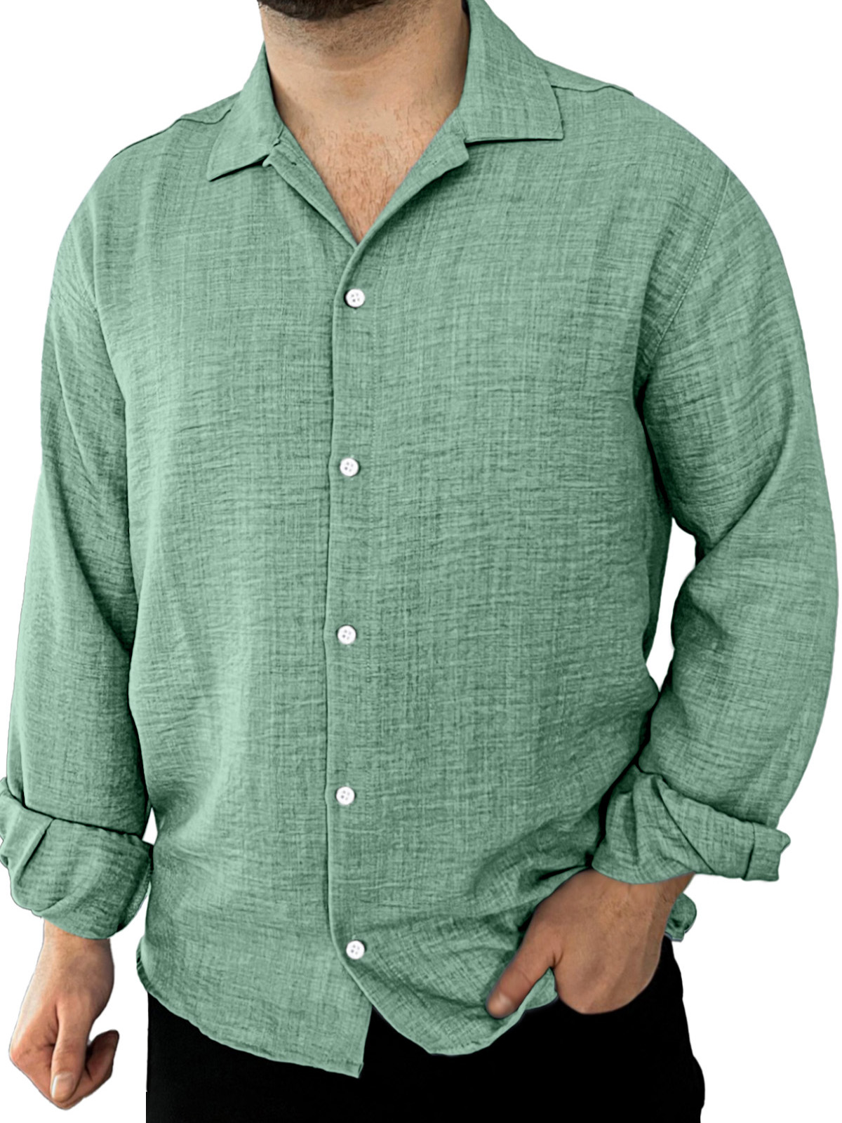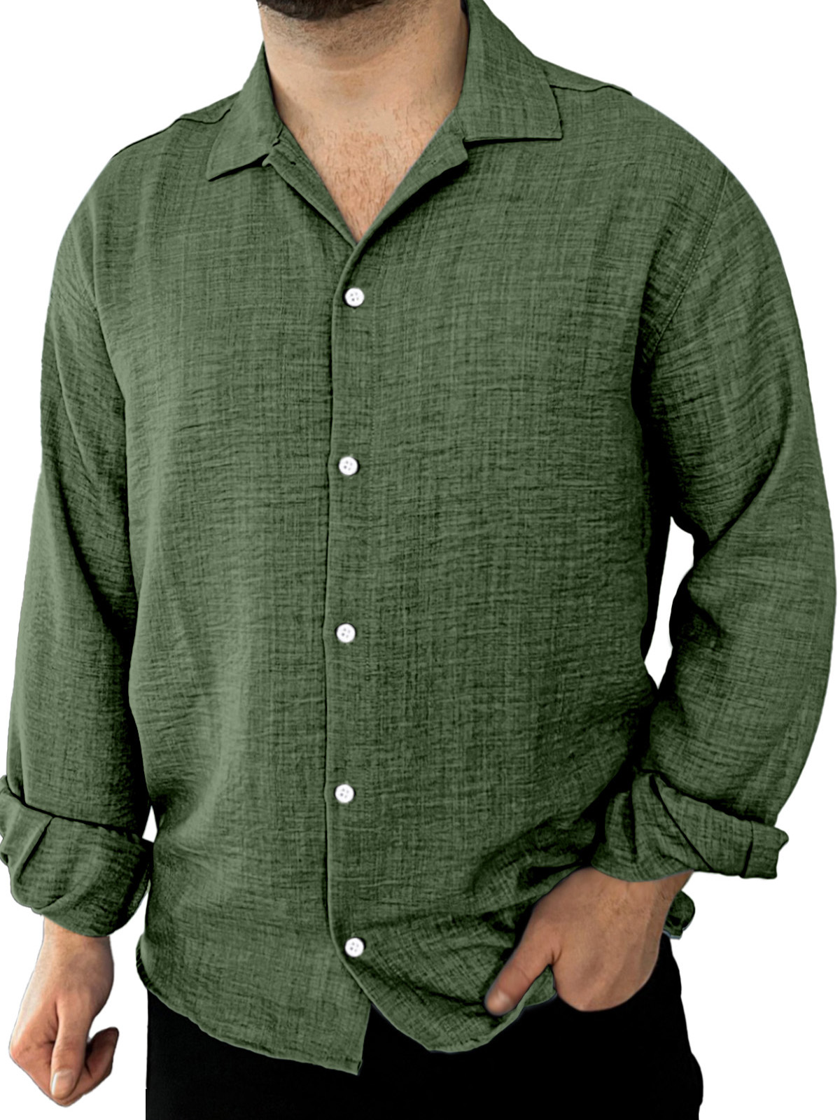 Men's Simple Daily Casual Solid Color Lapel Long-sleeved Shirt