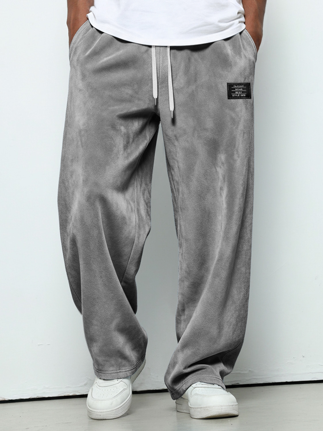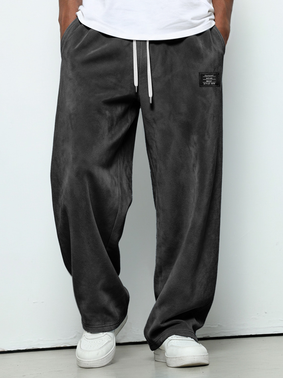 Men's Simple Suede Embroidered Logo Loose Solid Color Trousers
