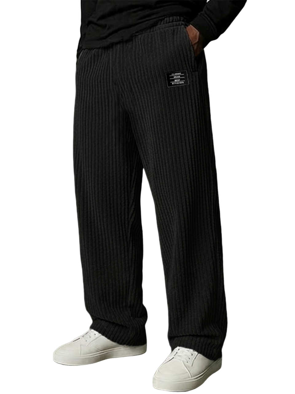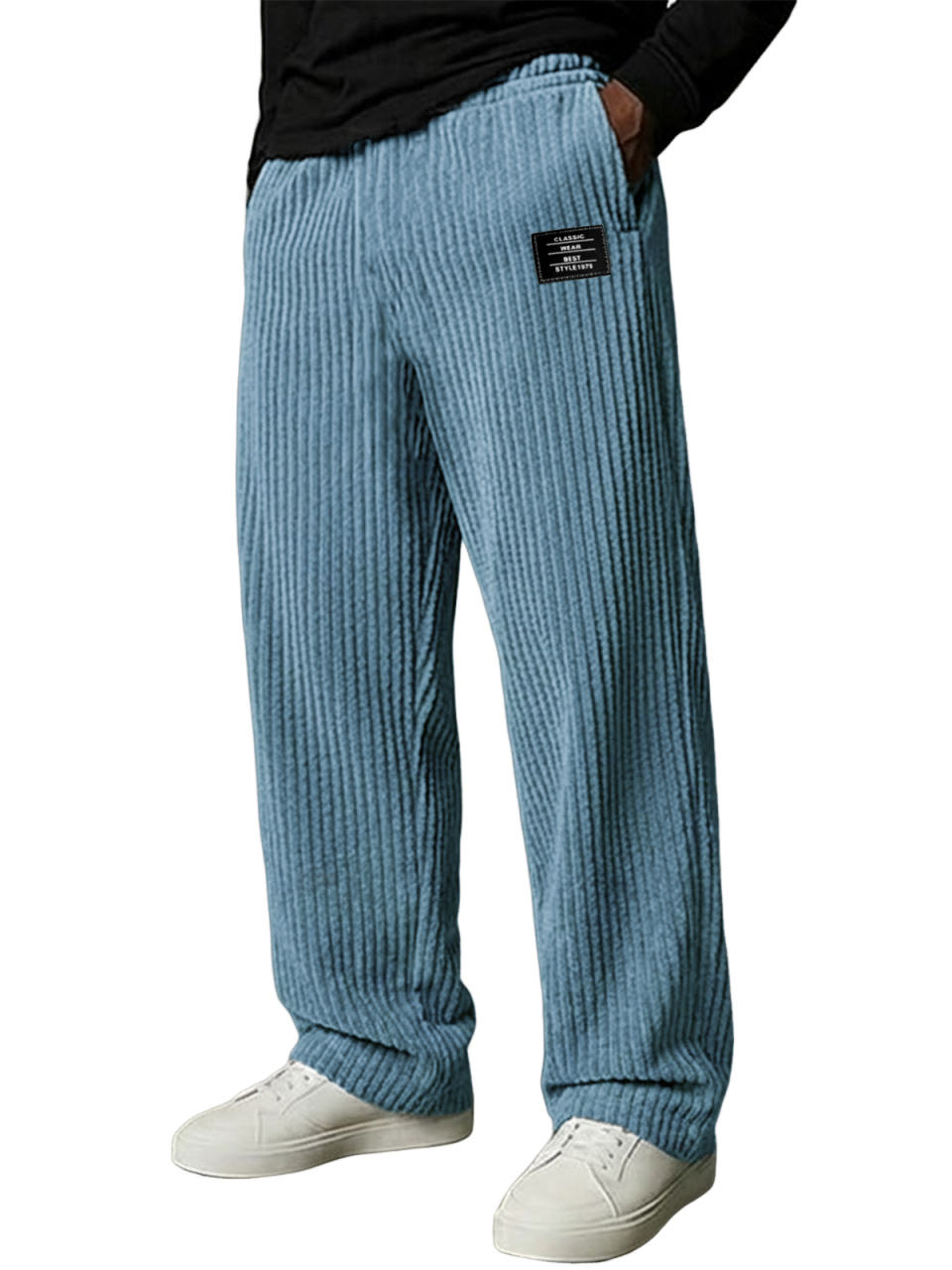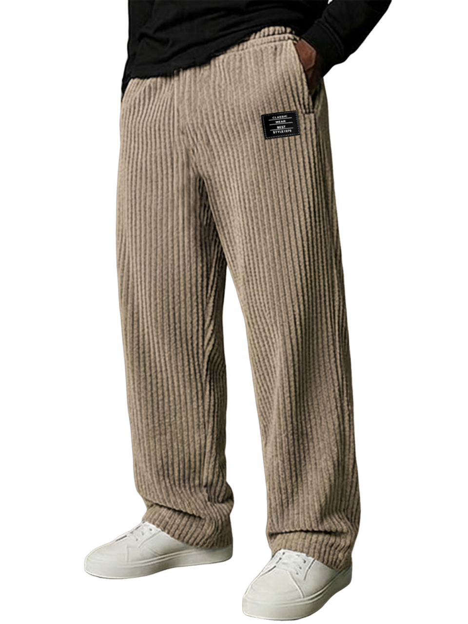 Men's Stylish Vertical Striped Corduroy Trousers with Embroidered Label