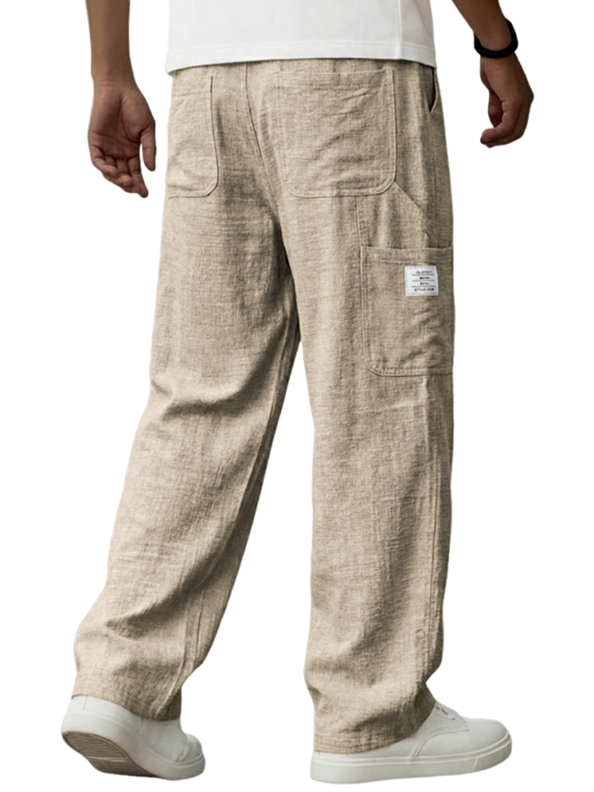 Men's Vintage Breathable Linen Multi-pocket Casual Embroidered Label Trousers