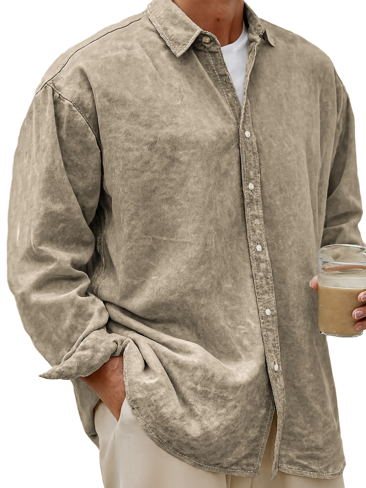 Men's Vintage Dyed Lyocell Casual Everyday Long-sleeved Shirt