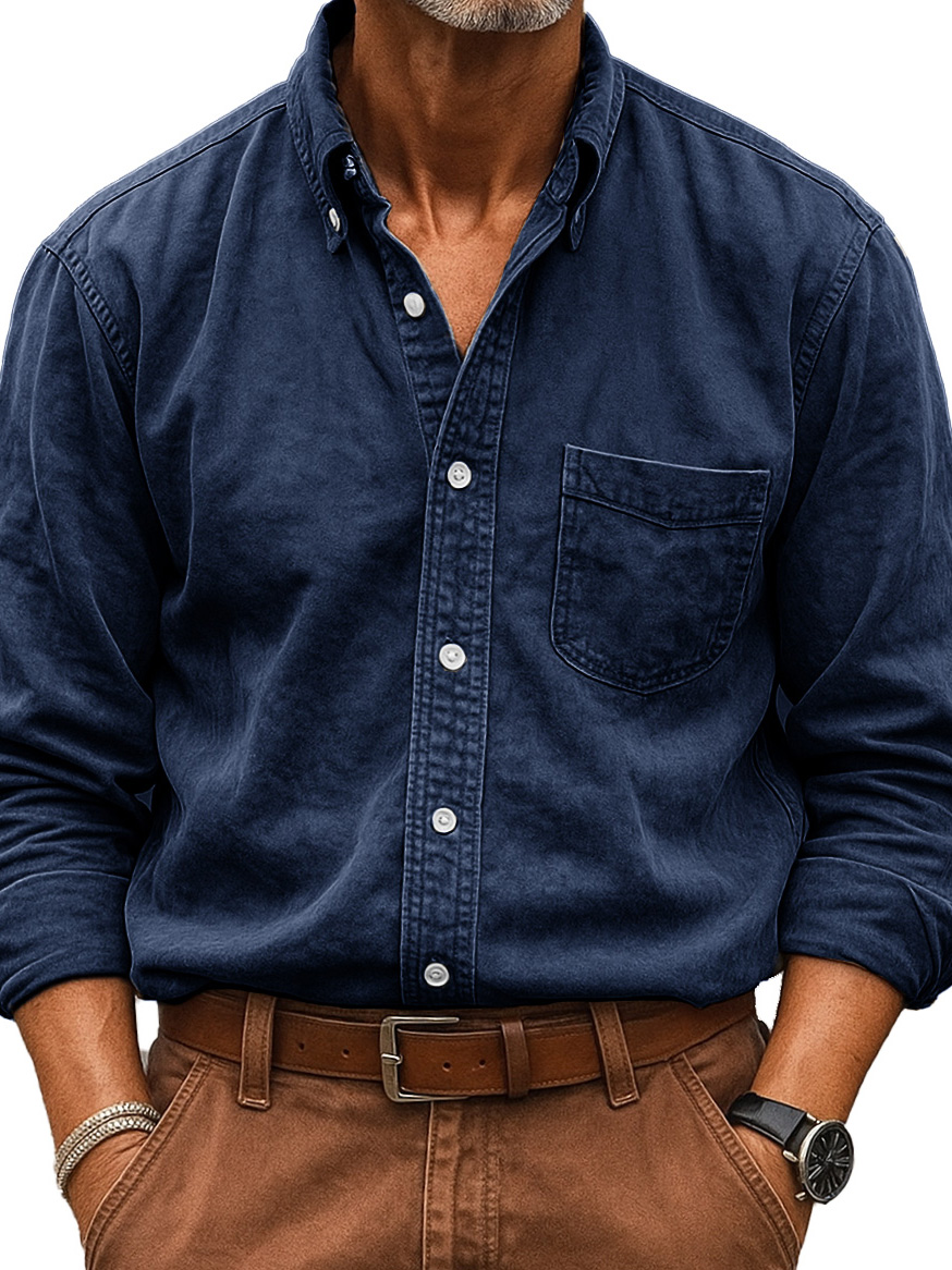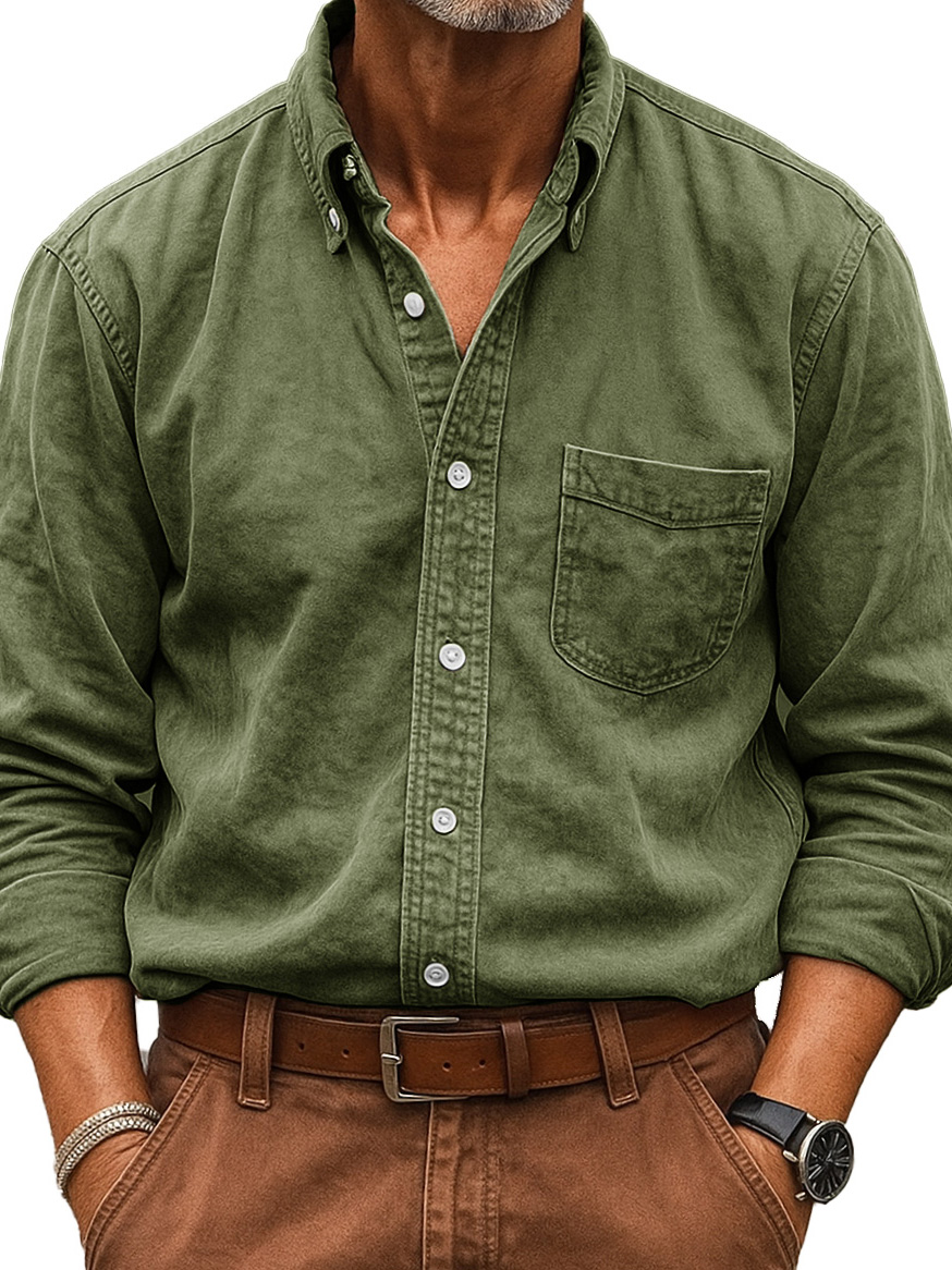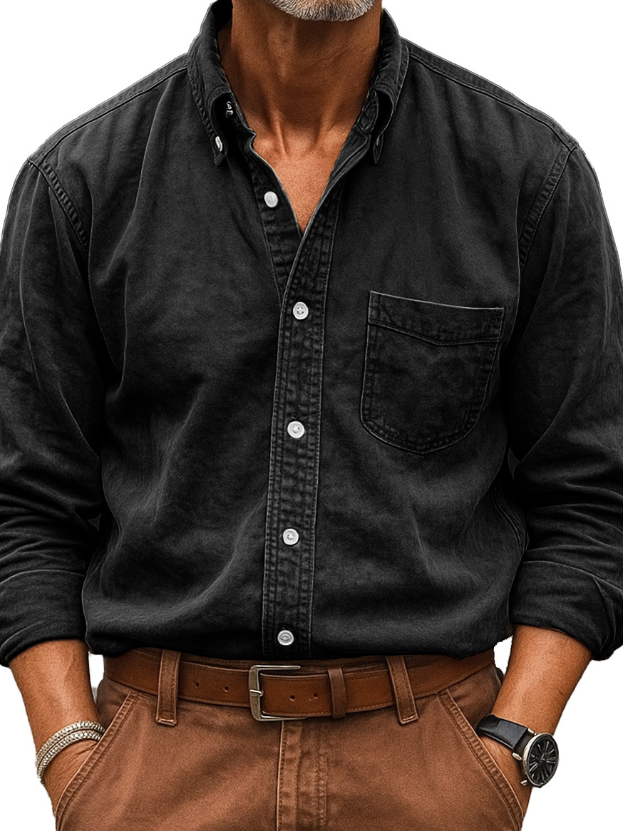Men's Wear Fashionable Retro Vintage Vintage Pocket Lapel Loose Long-sleeved Shirt